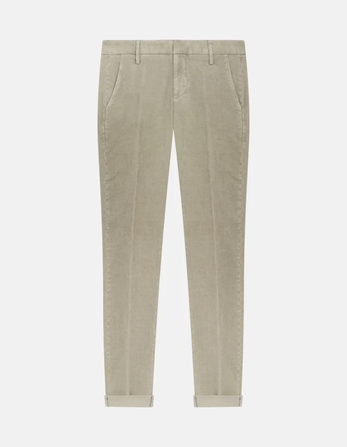 Gaubert slim-fit chino trousers, low waist, welt pockets at the back. 1500-rib corduroy. Garment dyed. Dondup logo. Made in Italy