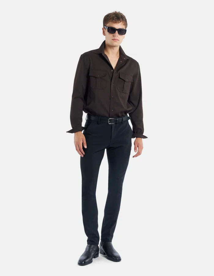 Gaubert slim-fit chino trousers, low waist, welt pockets at the back. Bi-stretch weave. Dondup logo. Made in Italy