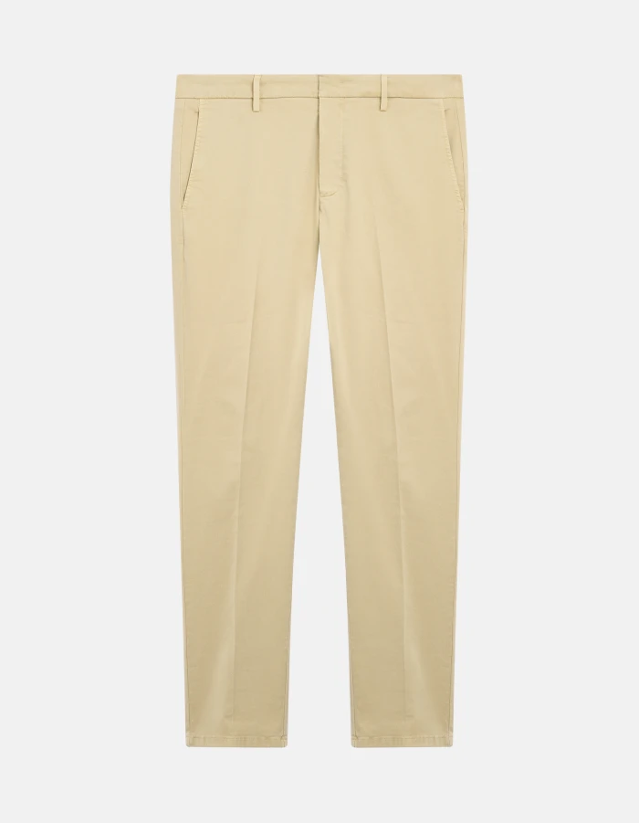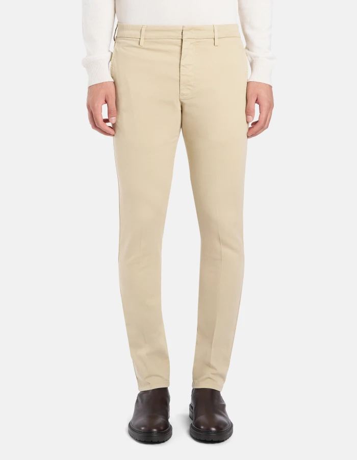 Ral regular-fit chino trousers, regular waist, welt pockets at the back. Warm hand stretch gabardine. Garment dyed. Dondup logo. Made in Italy