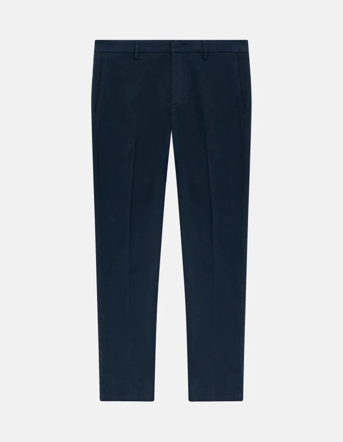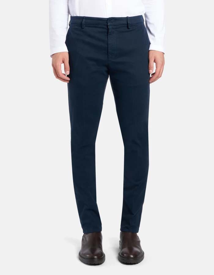 Ral regular-fit chino trousers, regular waist, welt pockets at the back. Warm hand stretch gabardine. Garment dyed. Dondup logo. Made in Italy