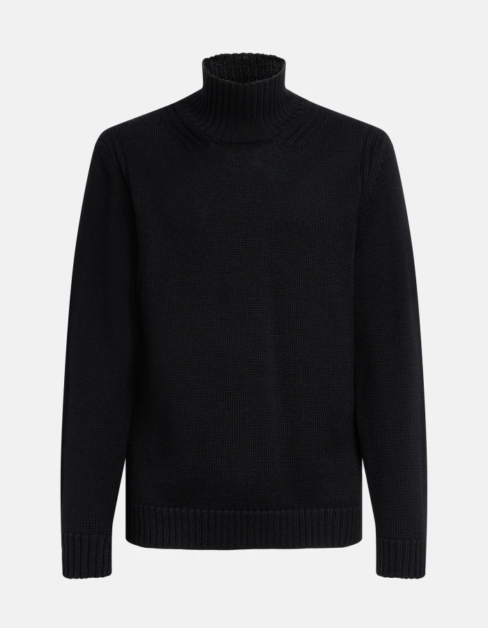 Regular-fit polo neck jumper in brushed wool
