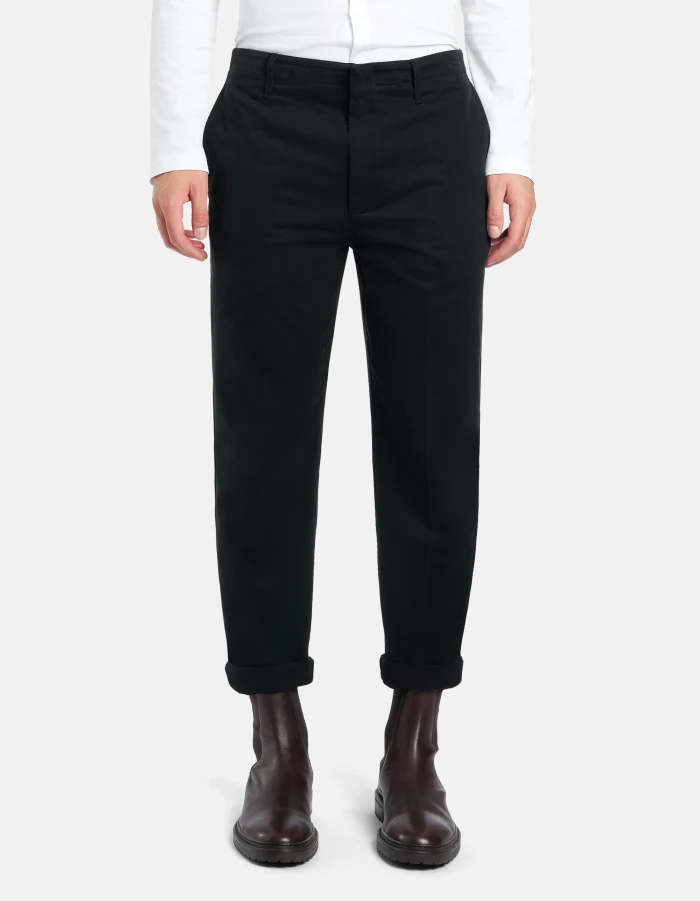 Zyan carrot-fit chino trousers, regular waist, welt pockets at the back. Velour gabardine. Dondup logo. Made in Italy