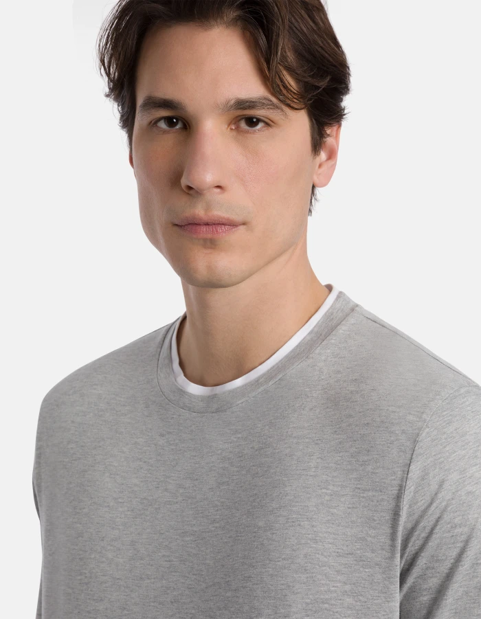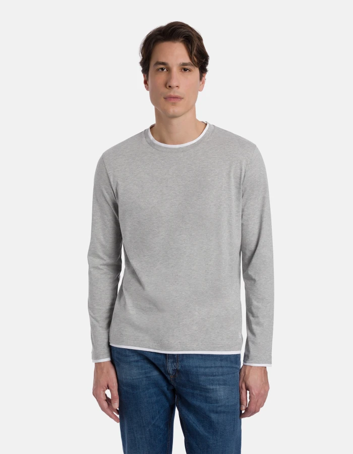 Regular-fit crew-neck T-shirt with long sleeves and contrast collar, sleeves and hem. D logo embroidered on the bottom left. Basic cotton jersey. Dondup logo. Made in Italy
