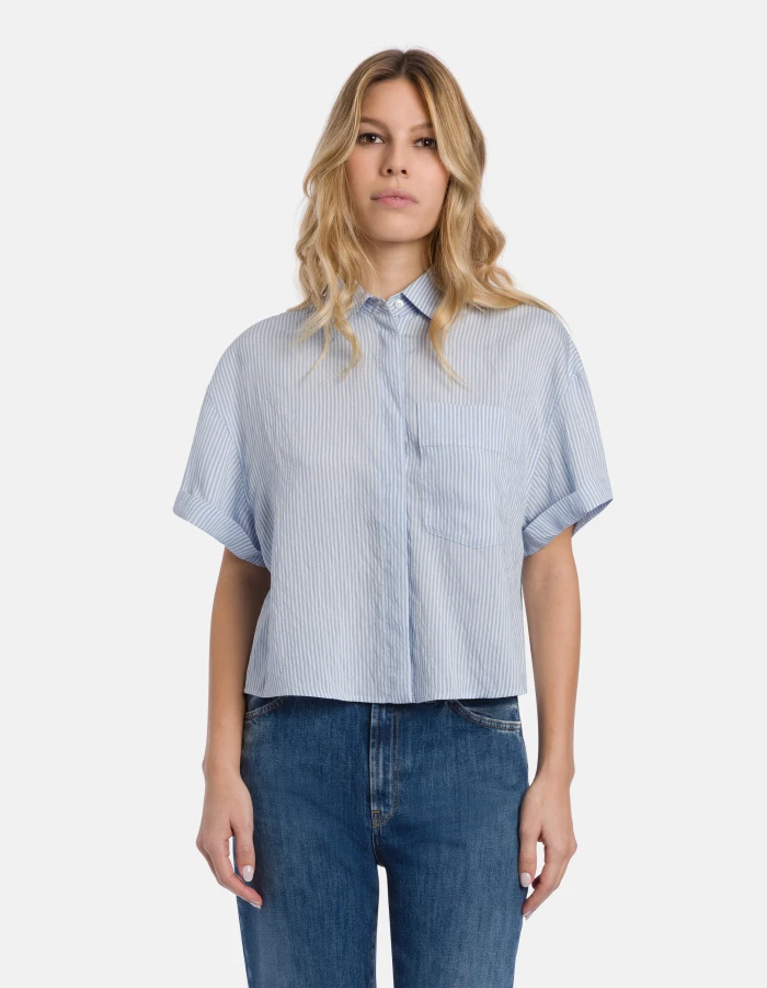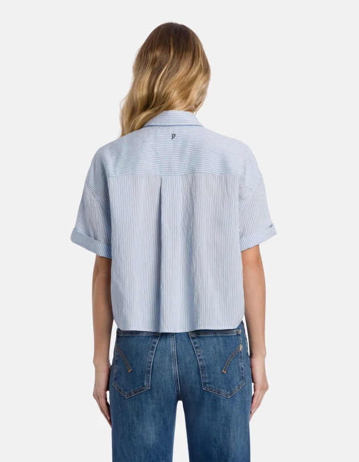 Short-sleeved boxy-fit shirt with front chest pocket. Fluid stripes. Dondup logo. Made in Italy