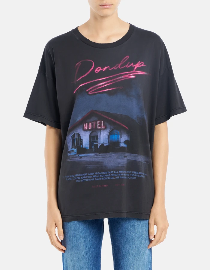 Oversized crew-neck T-shirt with short sleeves and printed logo at the front. Cotton jersey. Dondup logo. Made in Italy