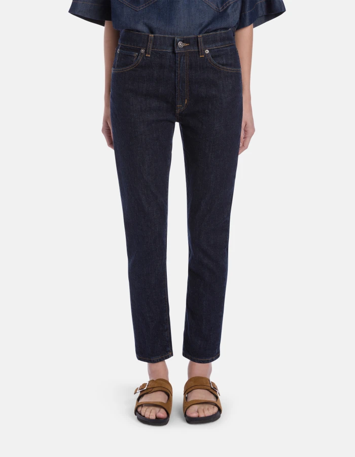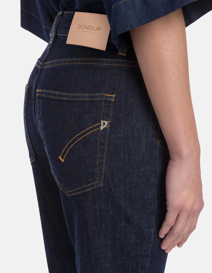 Daila slim-fit 5-pocket jeans, regular waist, straight leg. Blue 11.5 oz stretch denim. Clean dark wash. Dondup logo. Made in Italy