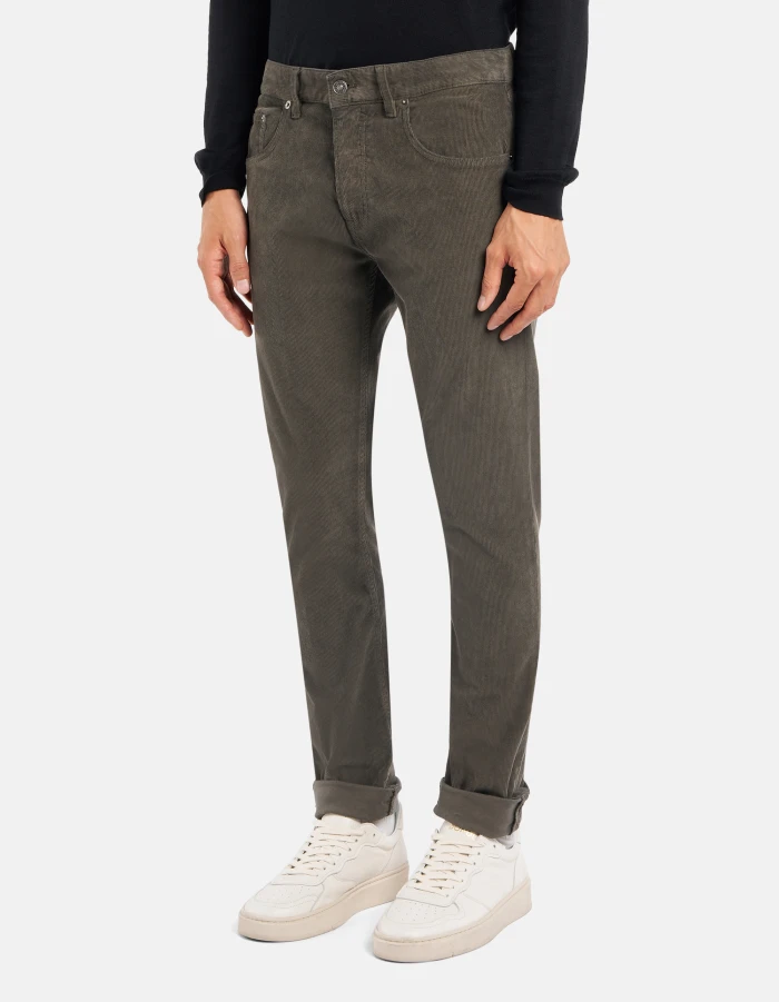 Icon regular-fit five-pocket trousers, regular waist. 1500-rib corduroy. Garment dyed. Dondup logo. Made in Italy