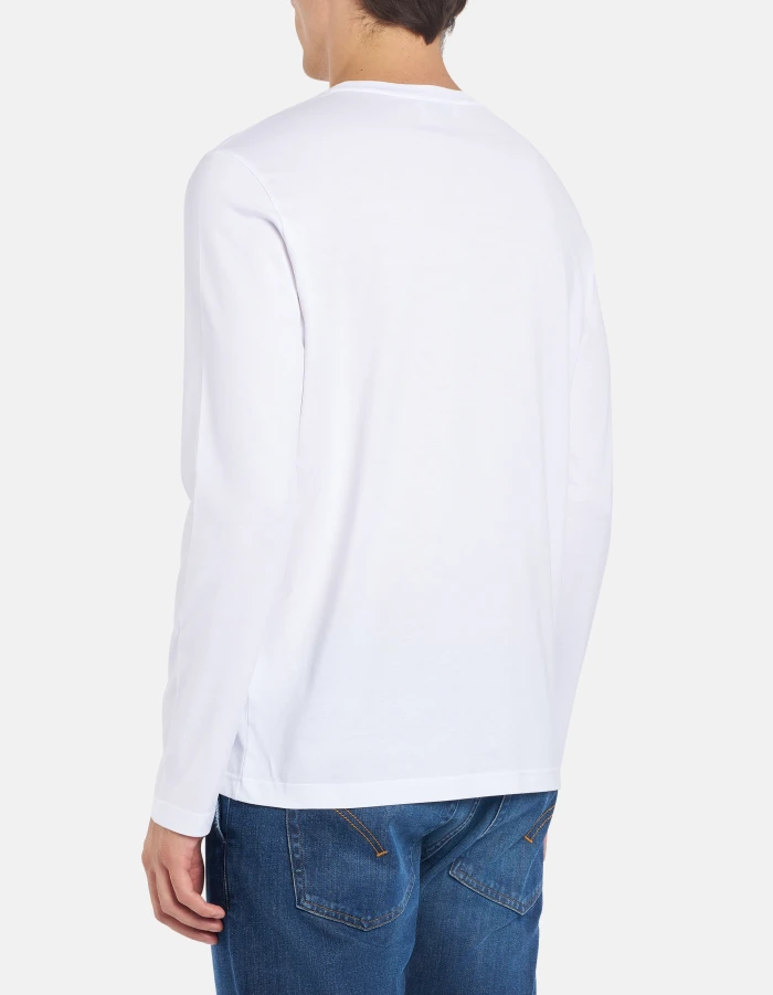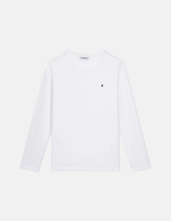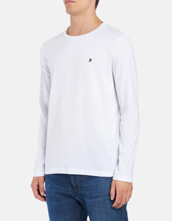 Slim-fit crew-neck T-shirt with long sleeves and D logo applique on the chest. Cotton jersey. Dondup logo. Made in Italy