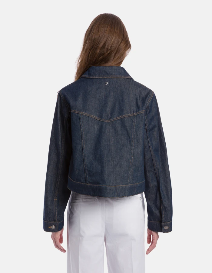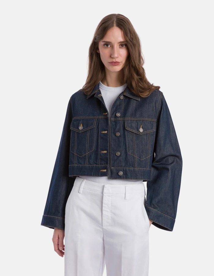 Regular-fit 5-pocket jacket, stud-button fastening and A-line sleeves. 11.5 oz colourful weave rigid denim. Clean dark wash. Dondup logo. Made in Italy