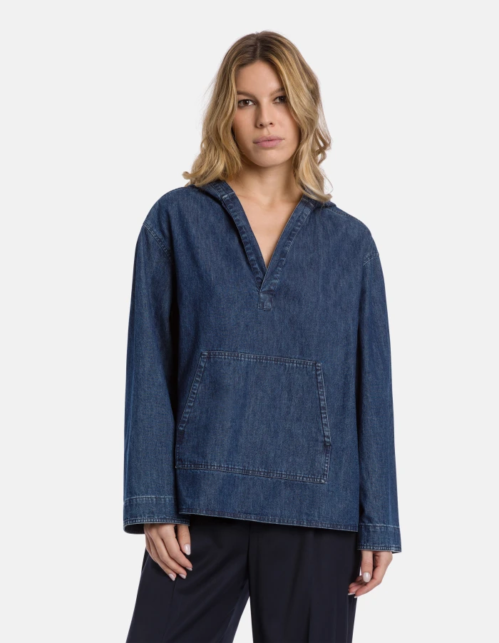 Loose-fit rigid denim shirt