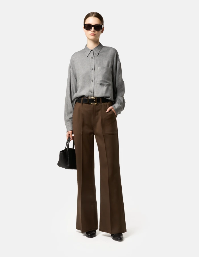 Amely wide-leg trousers, regular waist, fatigue pockets on the front. Wool gabardine. Dondup logo. Made in Italy