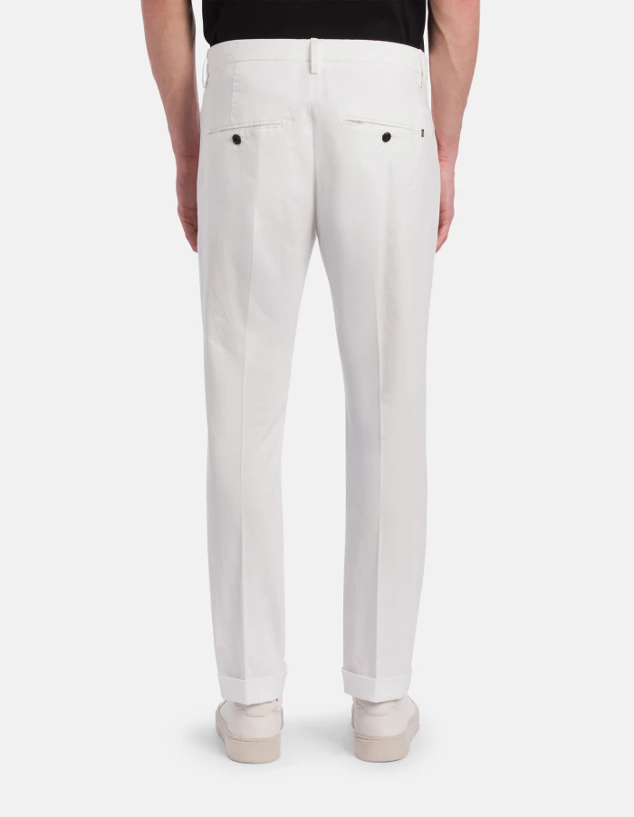 Gaubert slim-fit chinos, low waist, welt pockets at the back. Lightweight gabardine. Garment dyed. Dondup logo. Made in Italy
