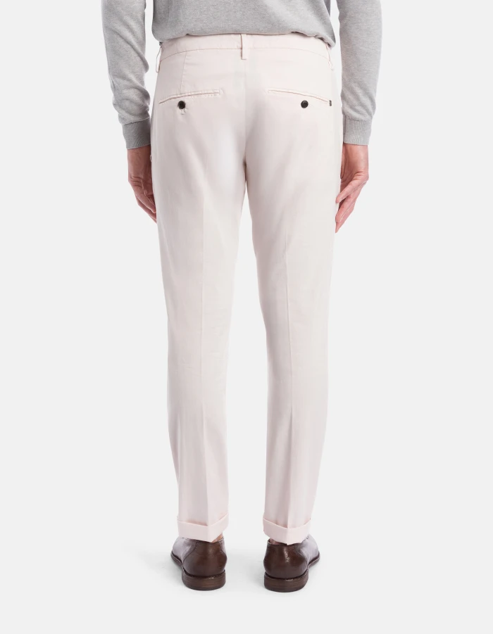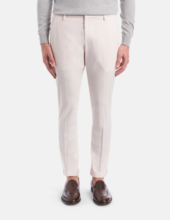 Gaubert slim-fit chinos, low waist, welt pockets at the back. Lightweight gabardine. Garment dyed. Dondup logo. Made in Italy