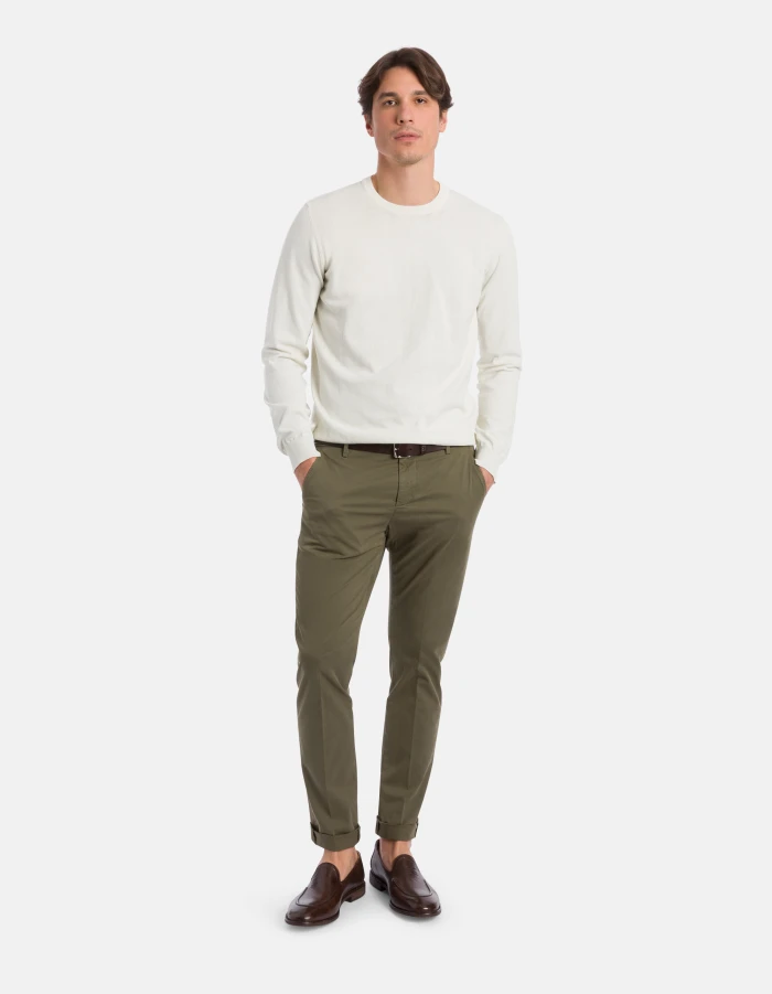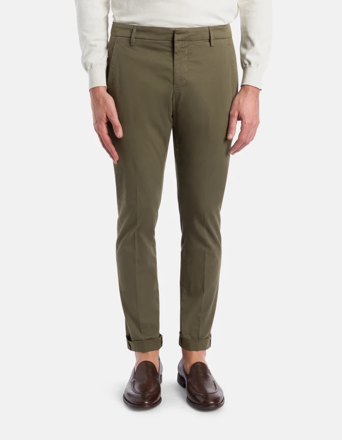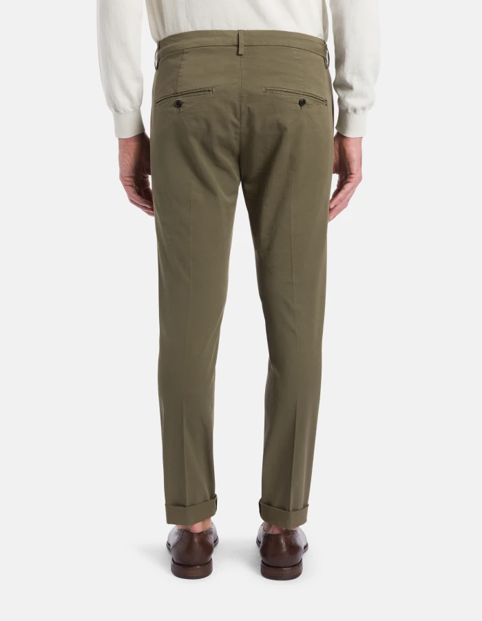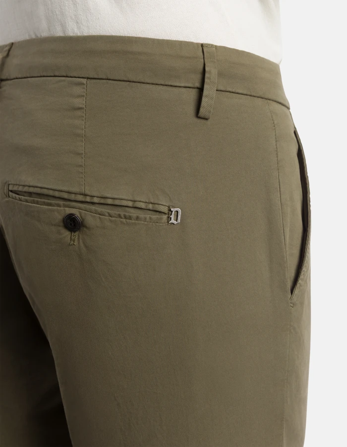 Gaubert slim-fit chinos, low waist, welt pockets at the back. Lightweight gabardine. Garment dyed. Dondup logo. Made in Italy