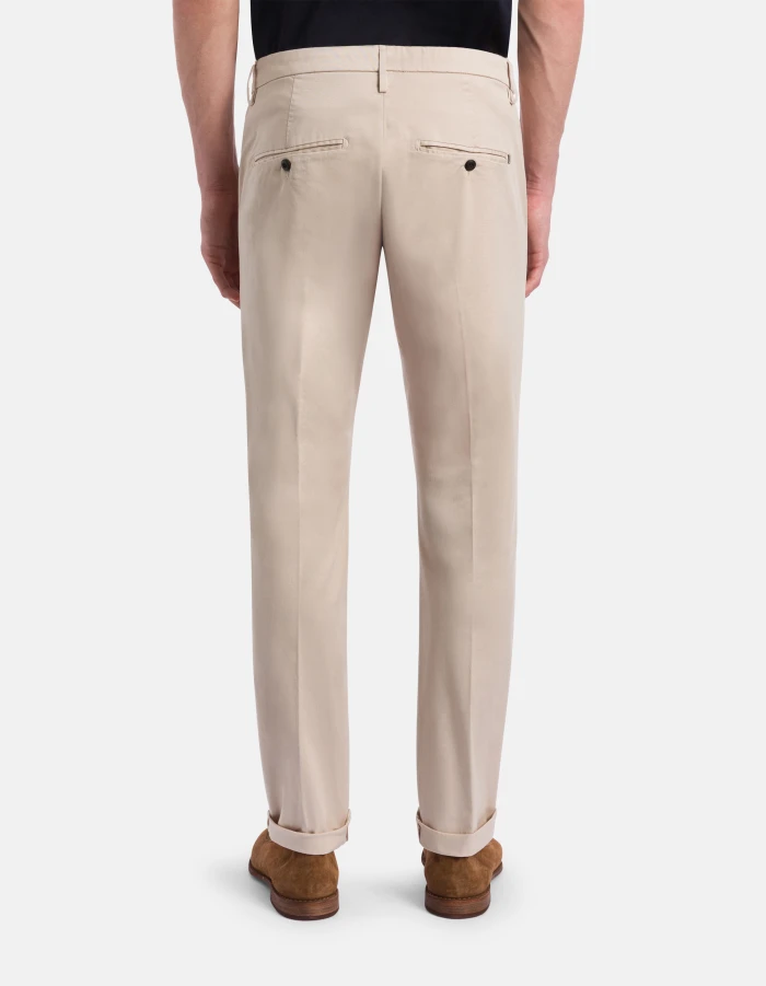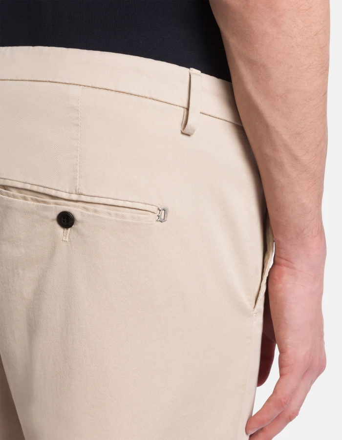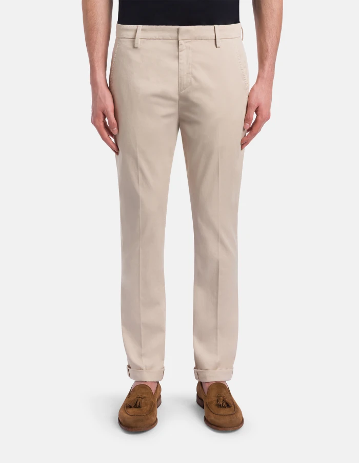 Gaubert slim-fit chinos, low waist, welt pockets at the back. Stretch compact gabardine. Garment dyed. Dondup logo. Made in Italy