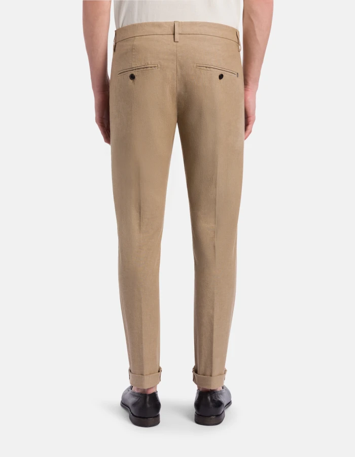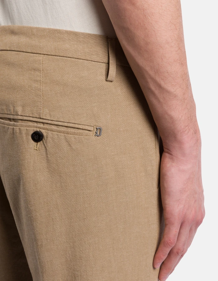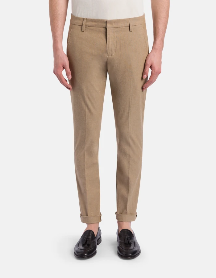 Gaubert slim-fit chinos, low waist, welt pockets at the back. Fil-à-fil cotton. Dondup logo. Made in Italy