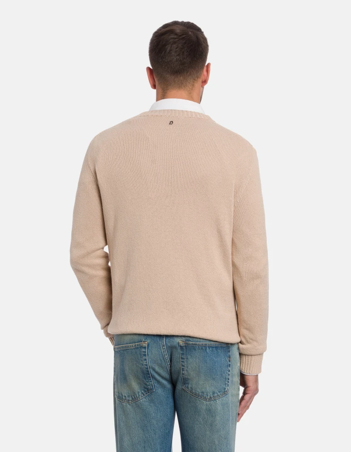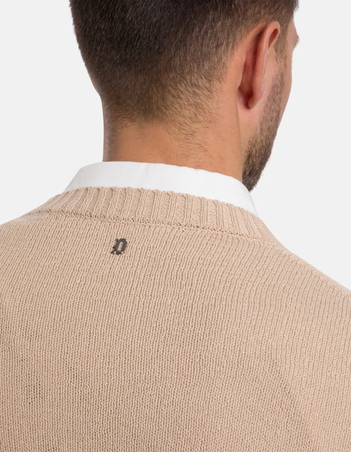 Regular-fit crew-neck jumper with logo on the back. Cotton. Dondup logo. Made in Italy
