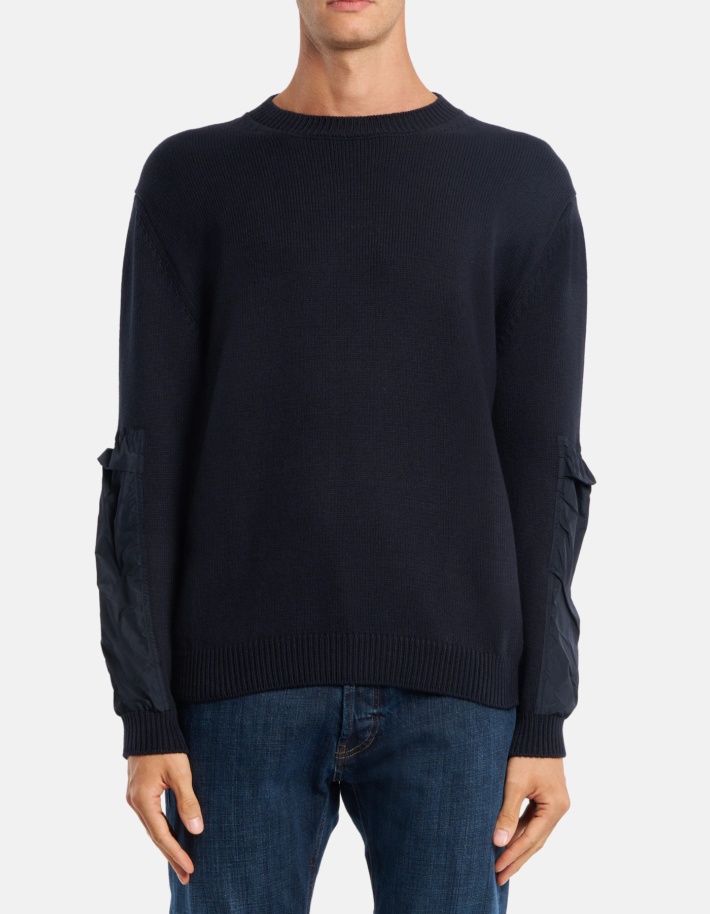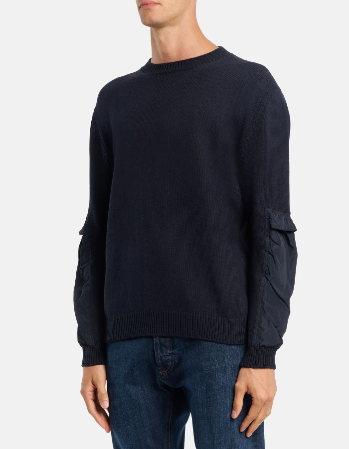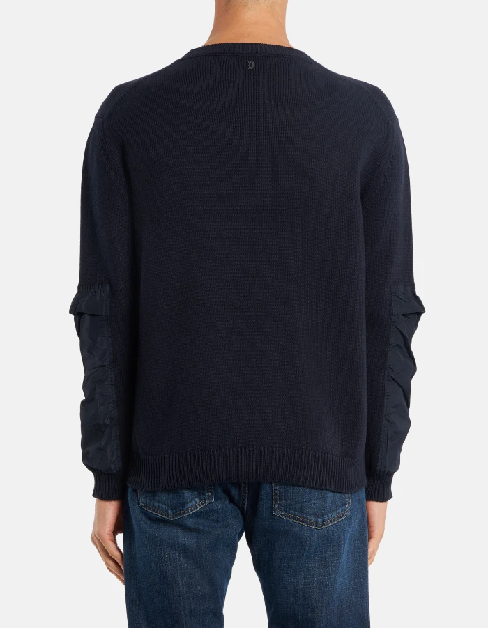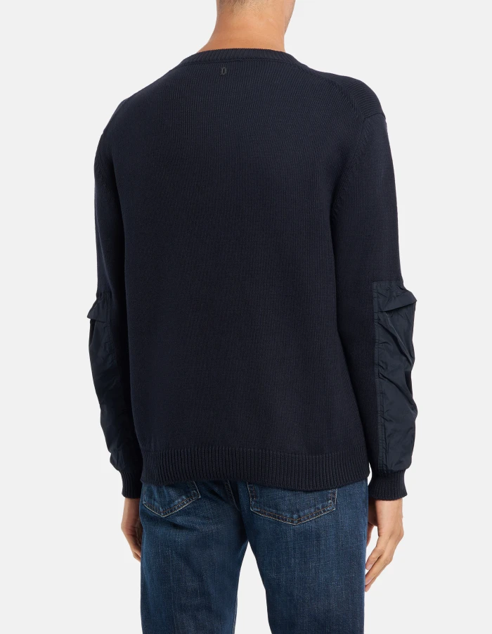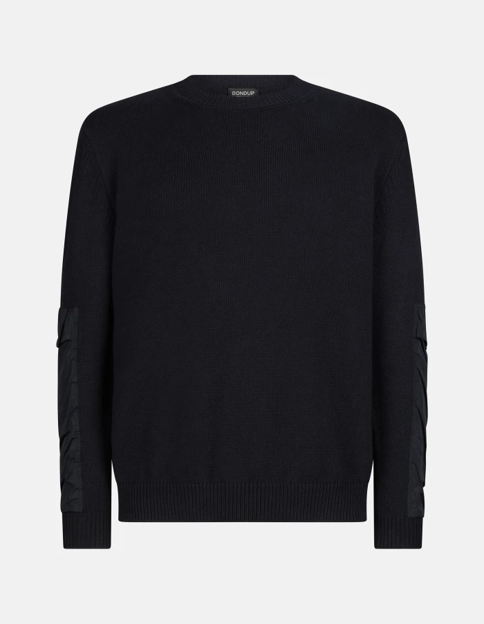 Regular-fit crew-neck jumper, long sleeves with nylon insets and D logo applique on the back. Cotton and cashmere. Dondup logo. Made in Italy