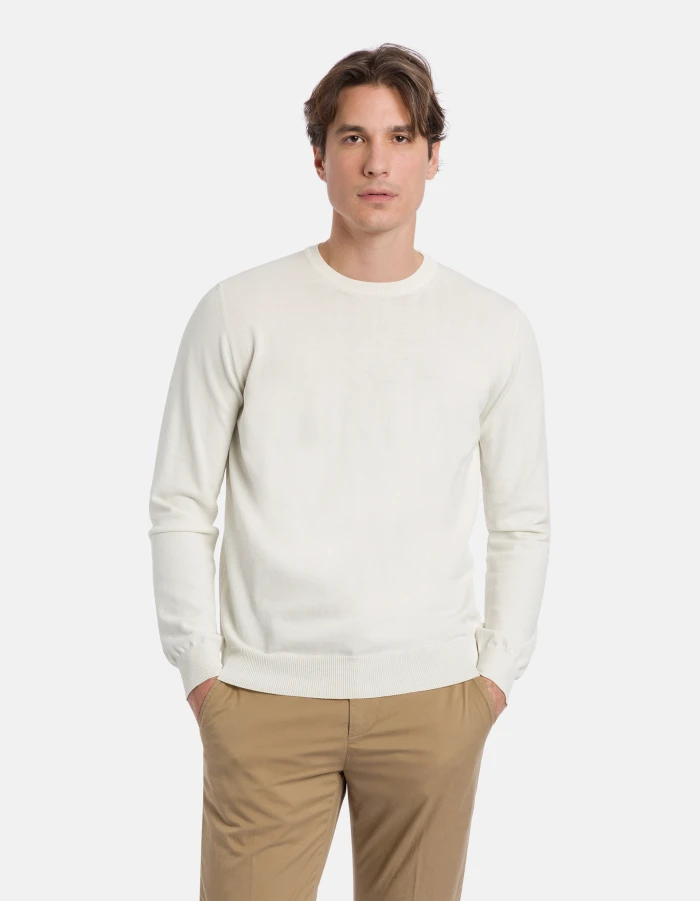 Regular-fit crew-neck jumper in cotton crepe