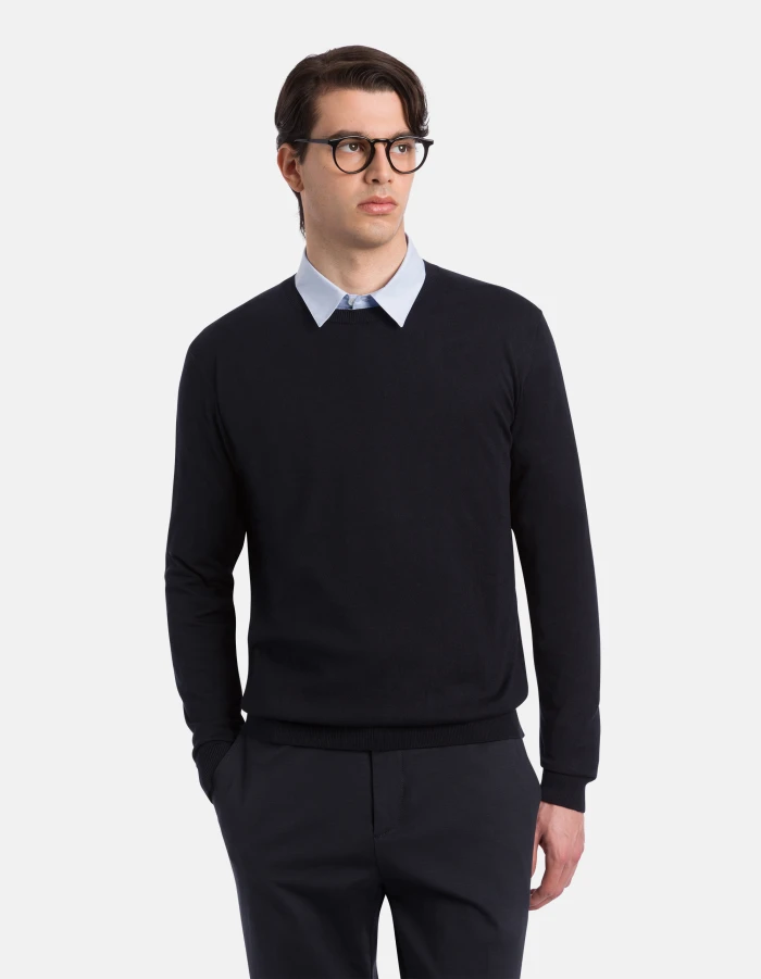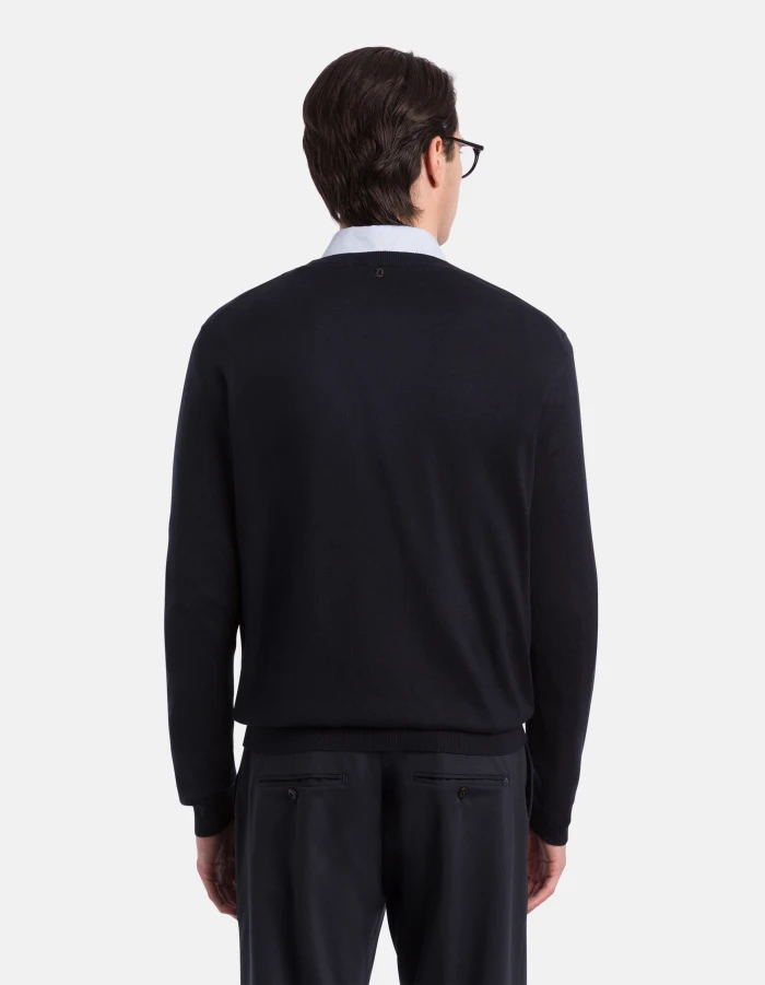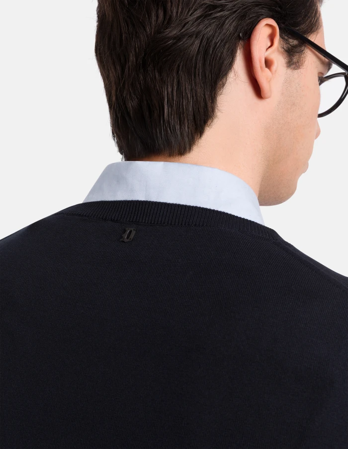 Regular-fit crew-neck jumper with logo on the back. Silk and cotton. Dondup logo. Made in Italy