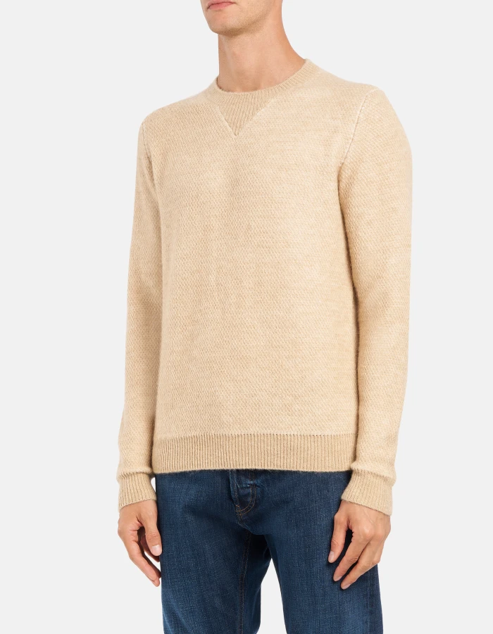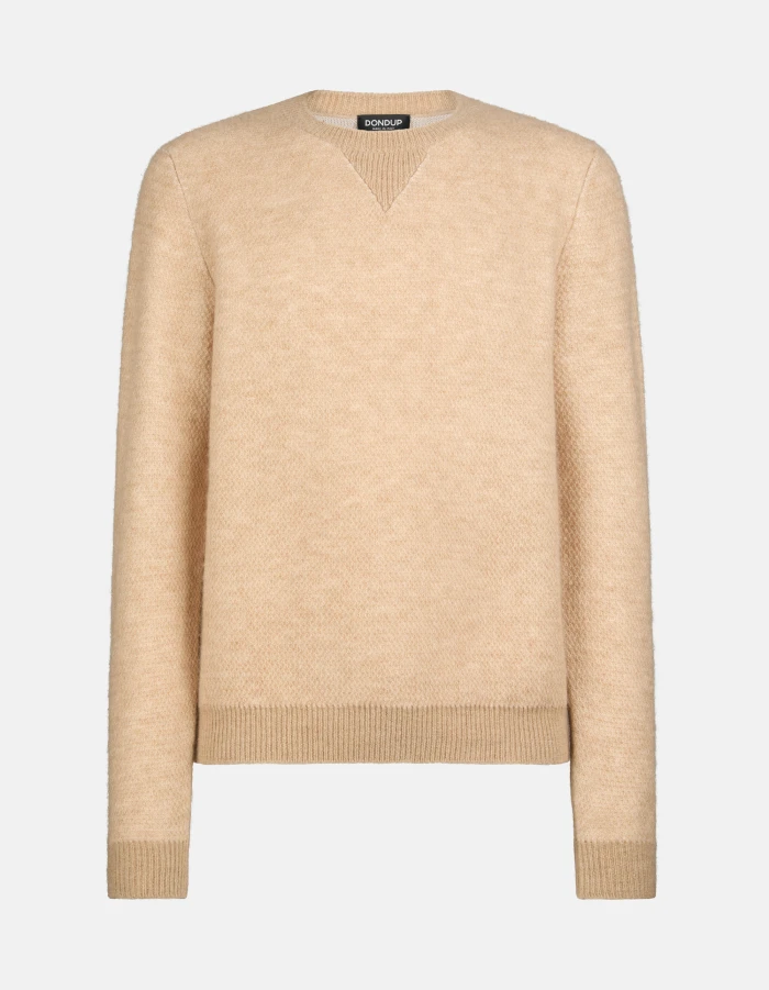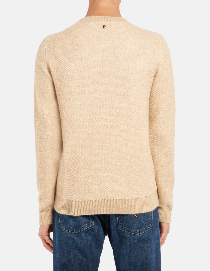 Regular-fit crew-neck jumper with long sleeves, fleece collar and D logo applique on the back. Wool and alpaca honeycomb. Dondup logo. Made in Italy