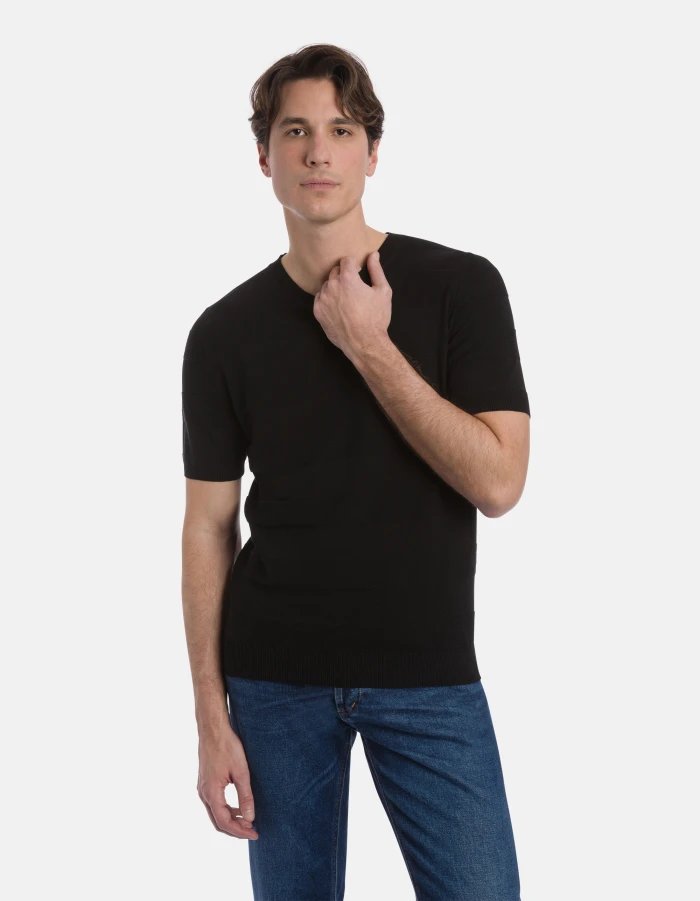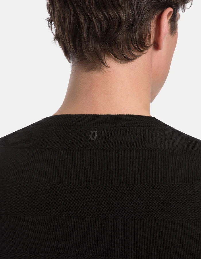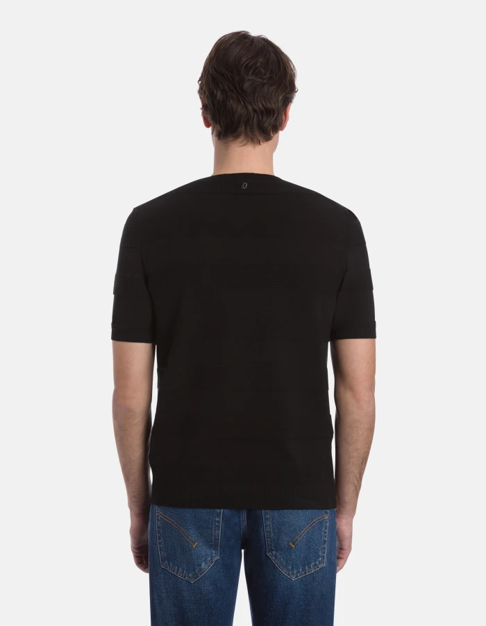 Regular-fit crew-neck T-shirt with short sleeves and logo on the back. Mixed stitches. Dondup logo. Made in Italy