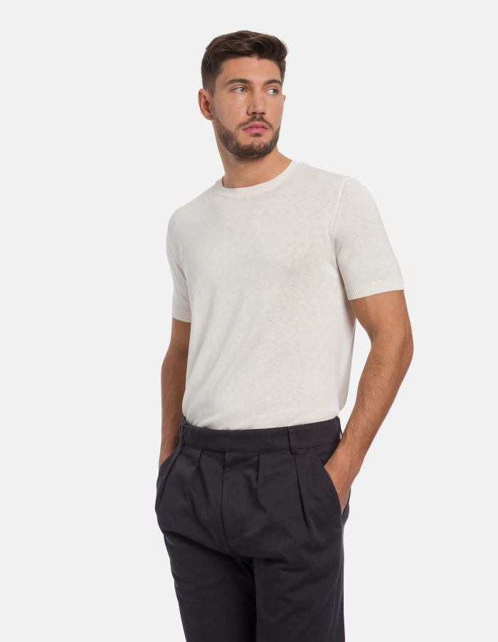 Regular-fit crew-neck T-shirt in silk and cotton