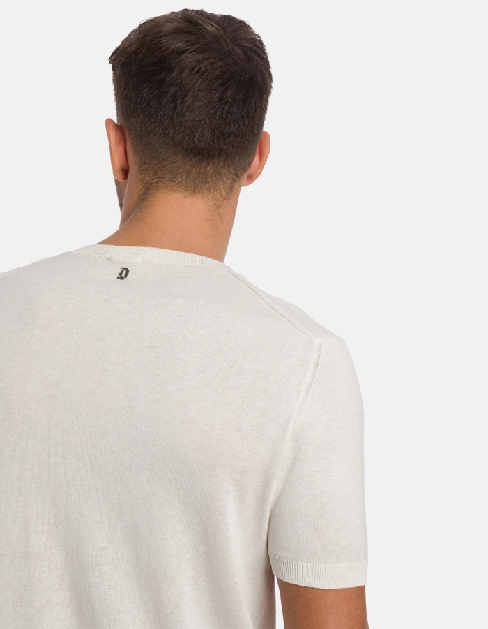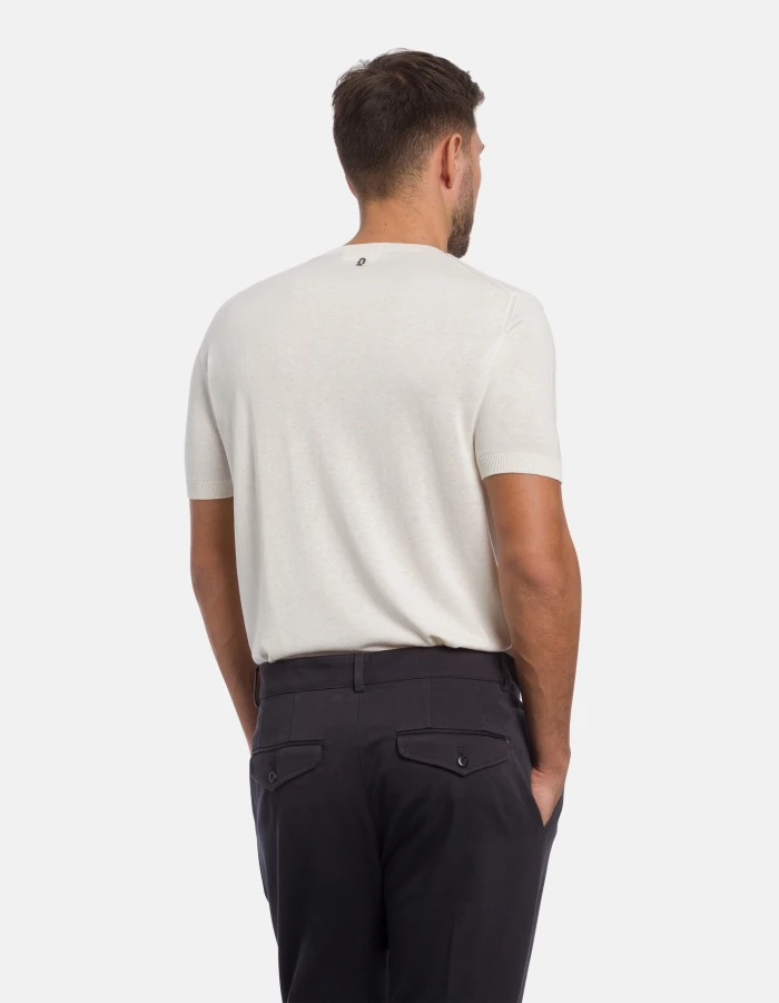 Regular-fit crew-neck T-shirt with short sleeves and logo on the back. Silk and cotton. Dondup logo. Made in Italy