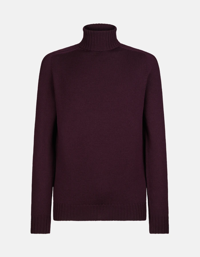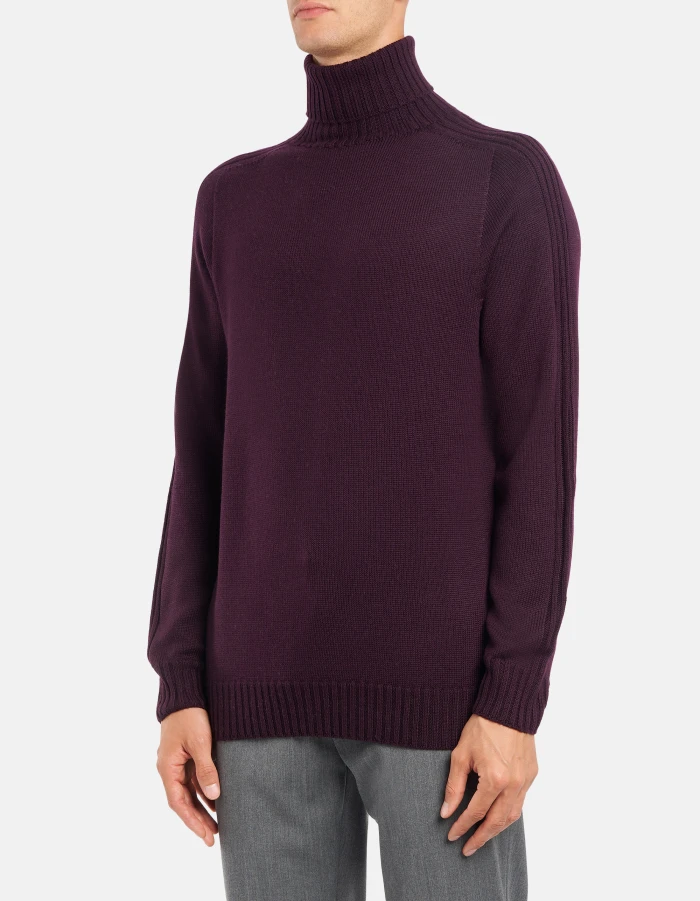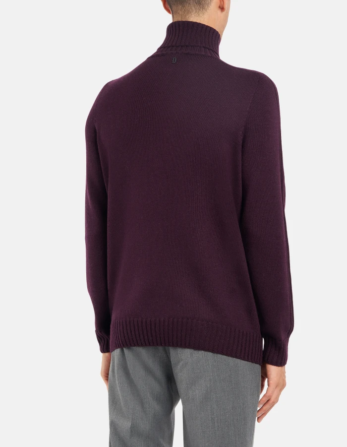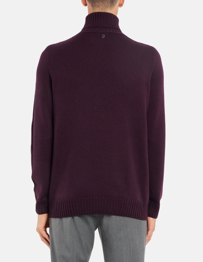Regular-fit polo neck jumper with long sleeves with Fisherman’s rib insets and D logo appliqué on the back. Basic wool. Dondup logo. Made in Italy