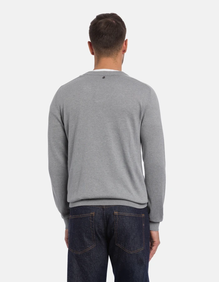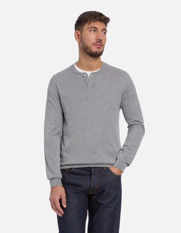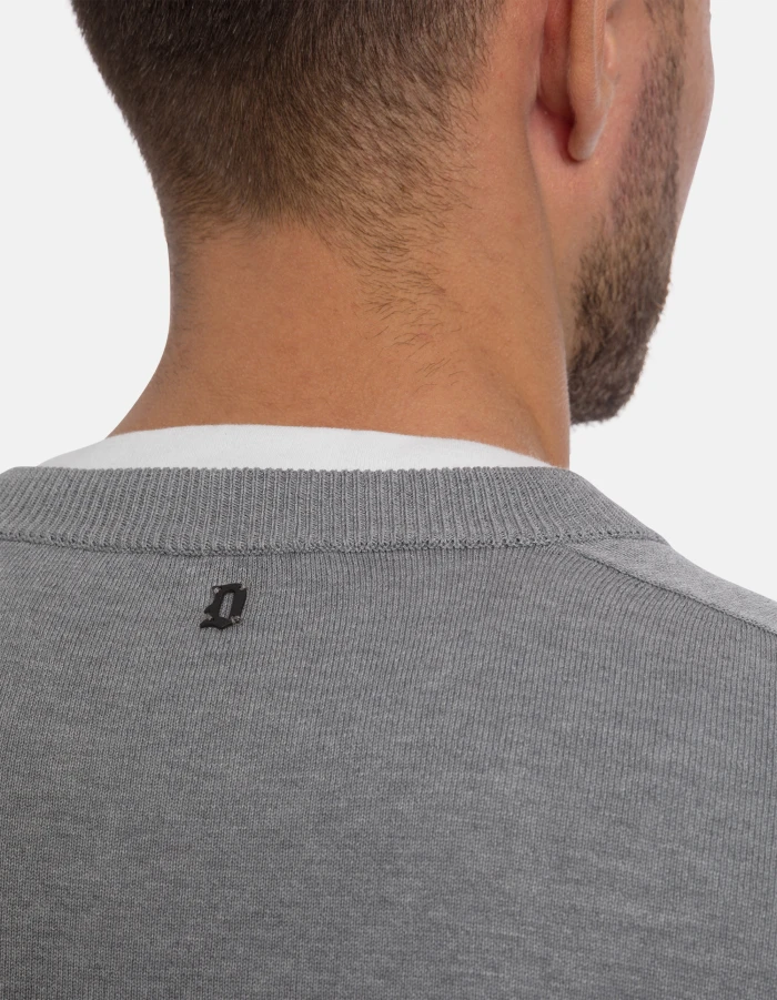 Regular-fit crew-neck Henley top with three buttons and logo appliqué on the back. Silk and cotton. Dondup logo. Made in Italy