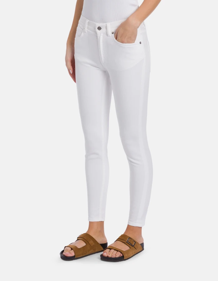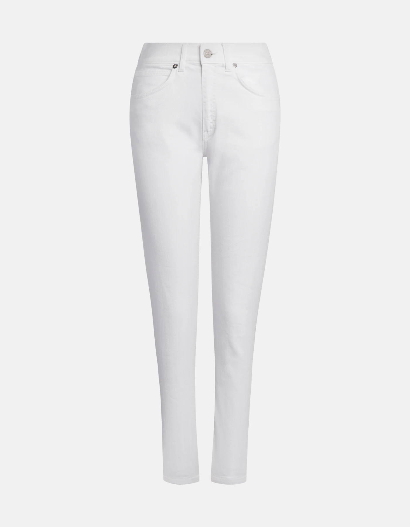 Kim super-skinny 5-pocket jeans, high rise. 10 oz left-hand stretch bull denim. Garment dyed. Dondup logo. Made in Italy