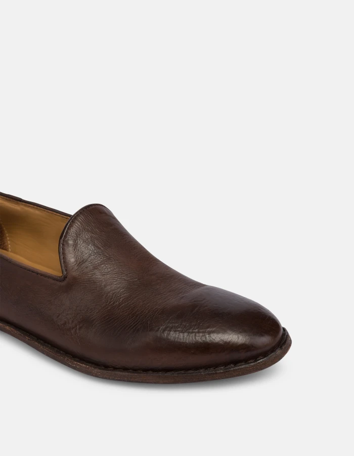 Slip-on with leather sole. Vintage wash. Leather. Made in Italy