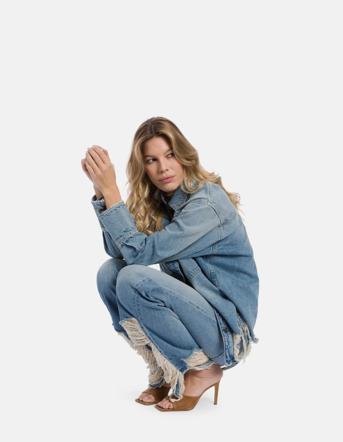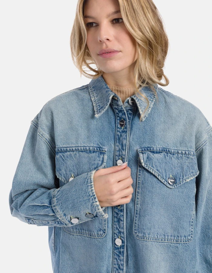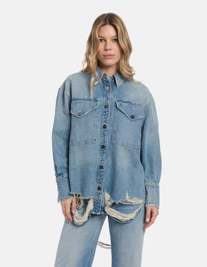 Oversized rigid denim shirt