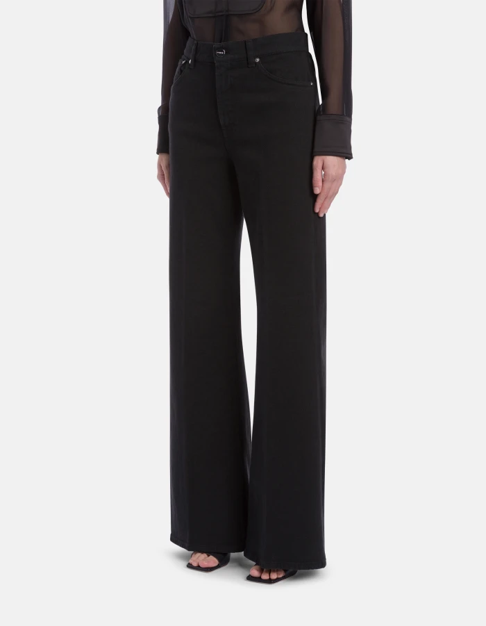 Amber wide-leg 5-pocket jeans, regular waist. 11.5 oz bluesign APPROVED stretch bull denim. Bluesign garment-dyed. Dondup logo. Made in Italy