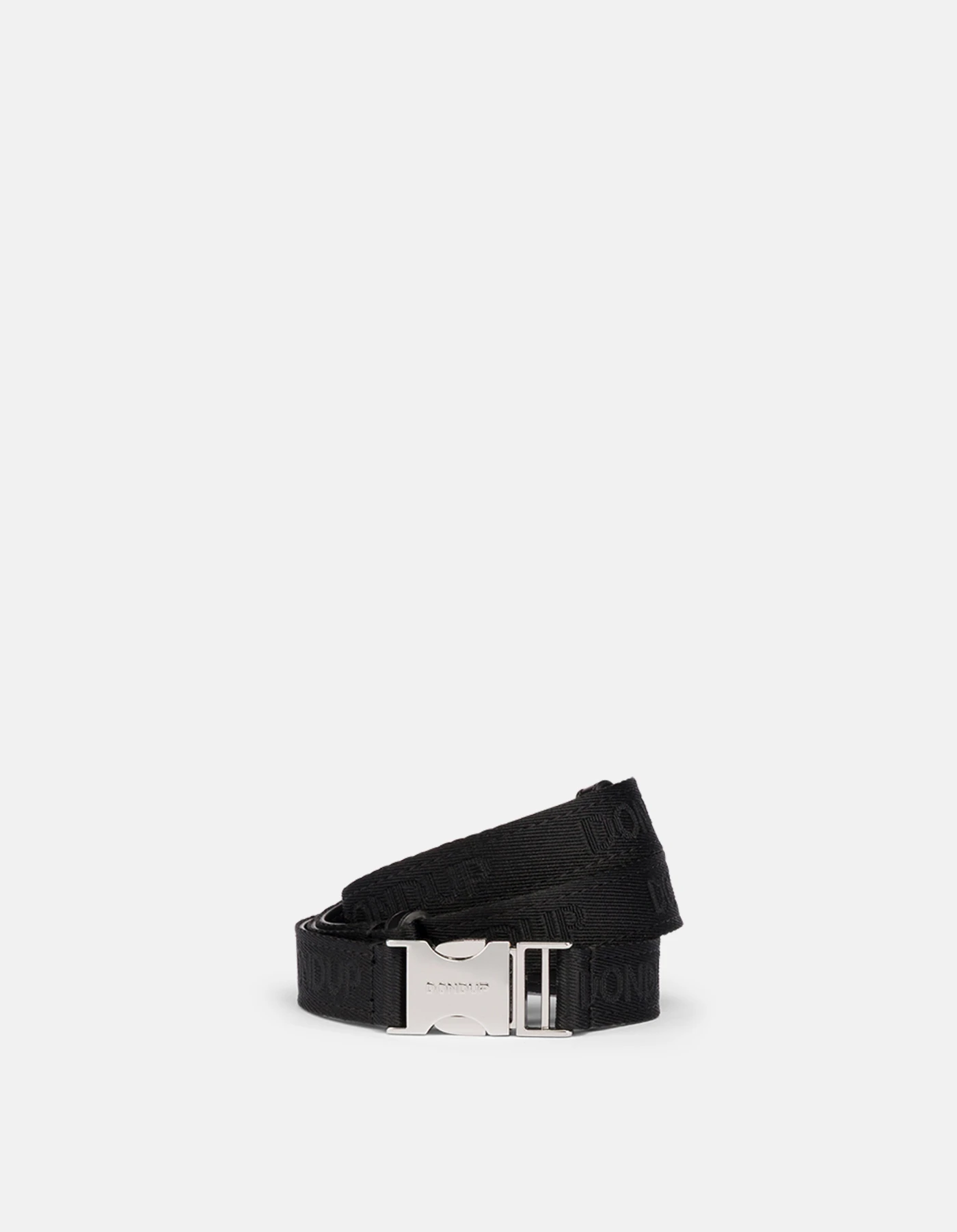 2 cm wide tuck belt with logo fastening and logo ribbon. Jacquard ribbon. Dondup logo. Made in Italy