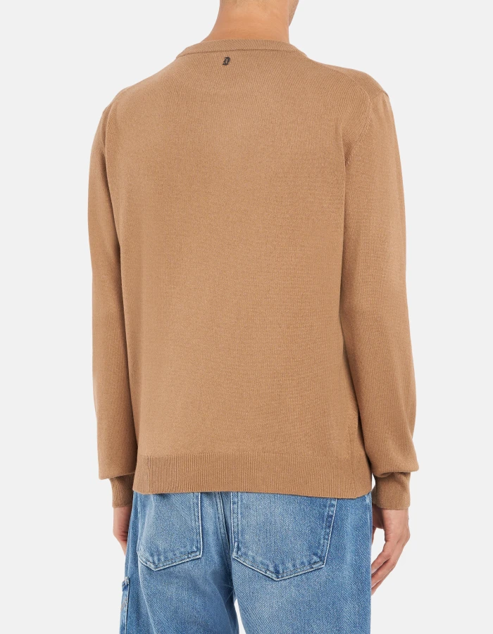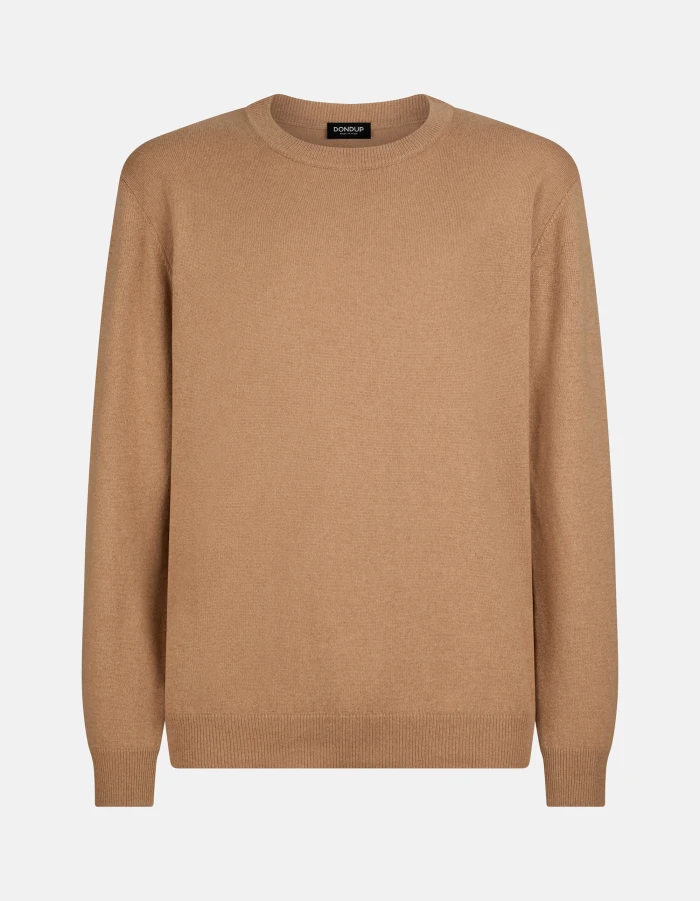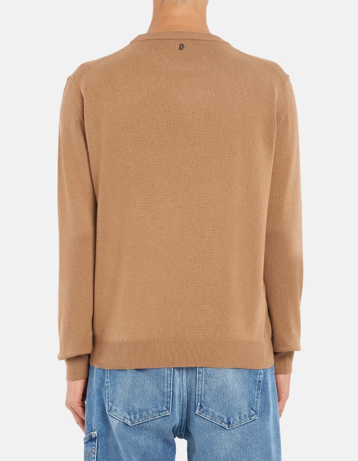 Regular-fit crew-neck jumper with long sleeves and D logo appliqué on the back. Cashmere and silk. Dondup logo. Made in Italy