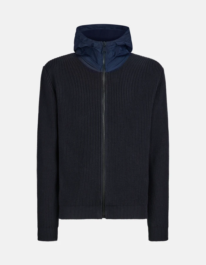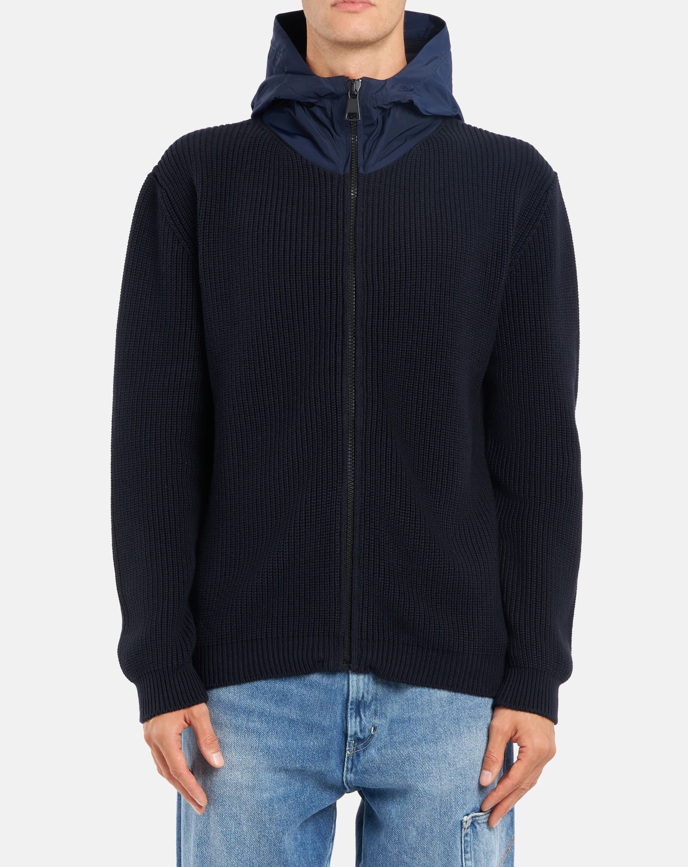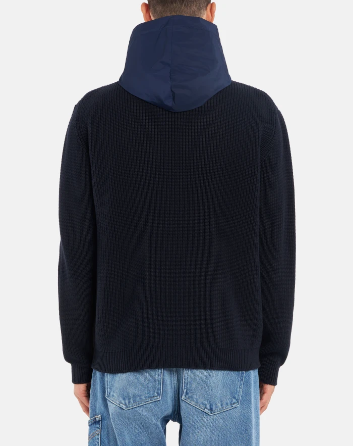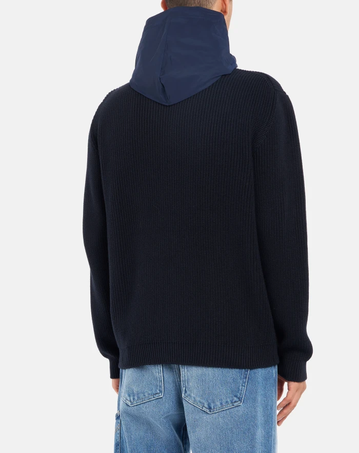 Regular-fit hooded jumper with long sleeves. Zip opening, nylon hood and D logo applique on the back. Cotton and cashmere. Dondup logo. Made in Italy