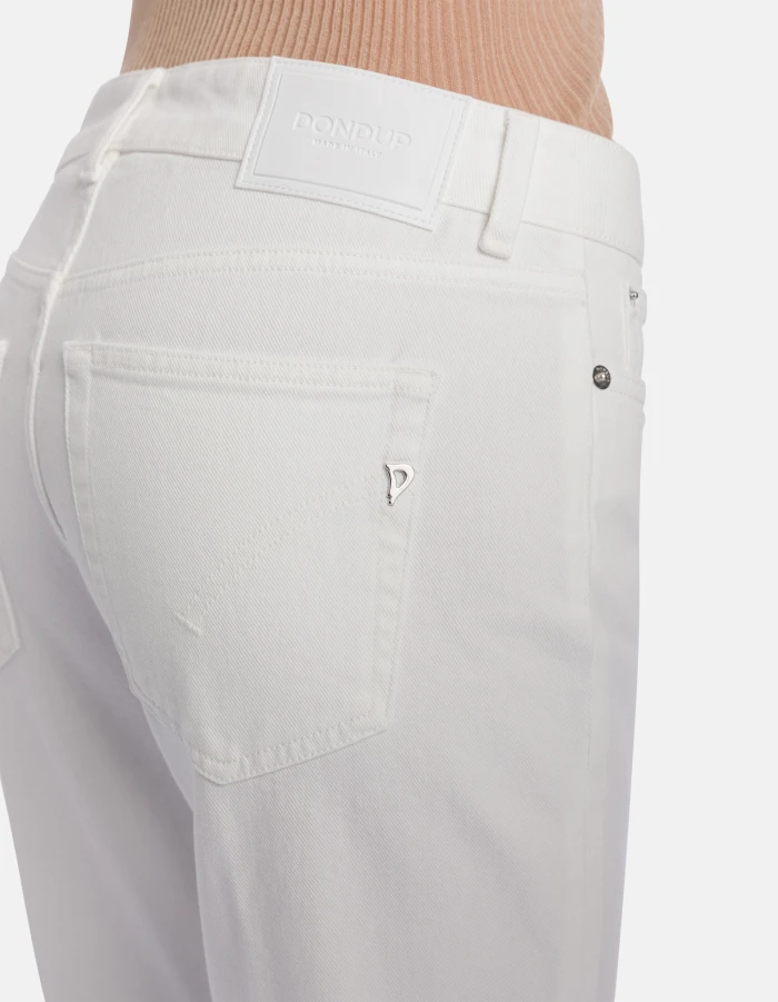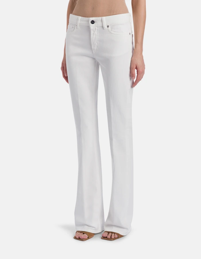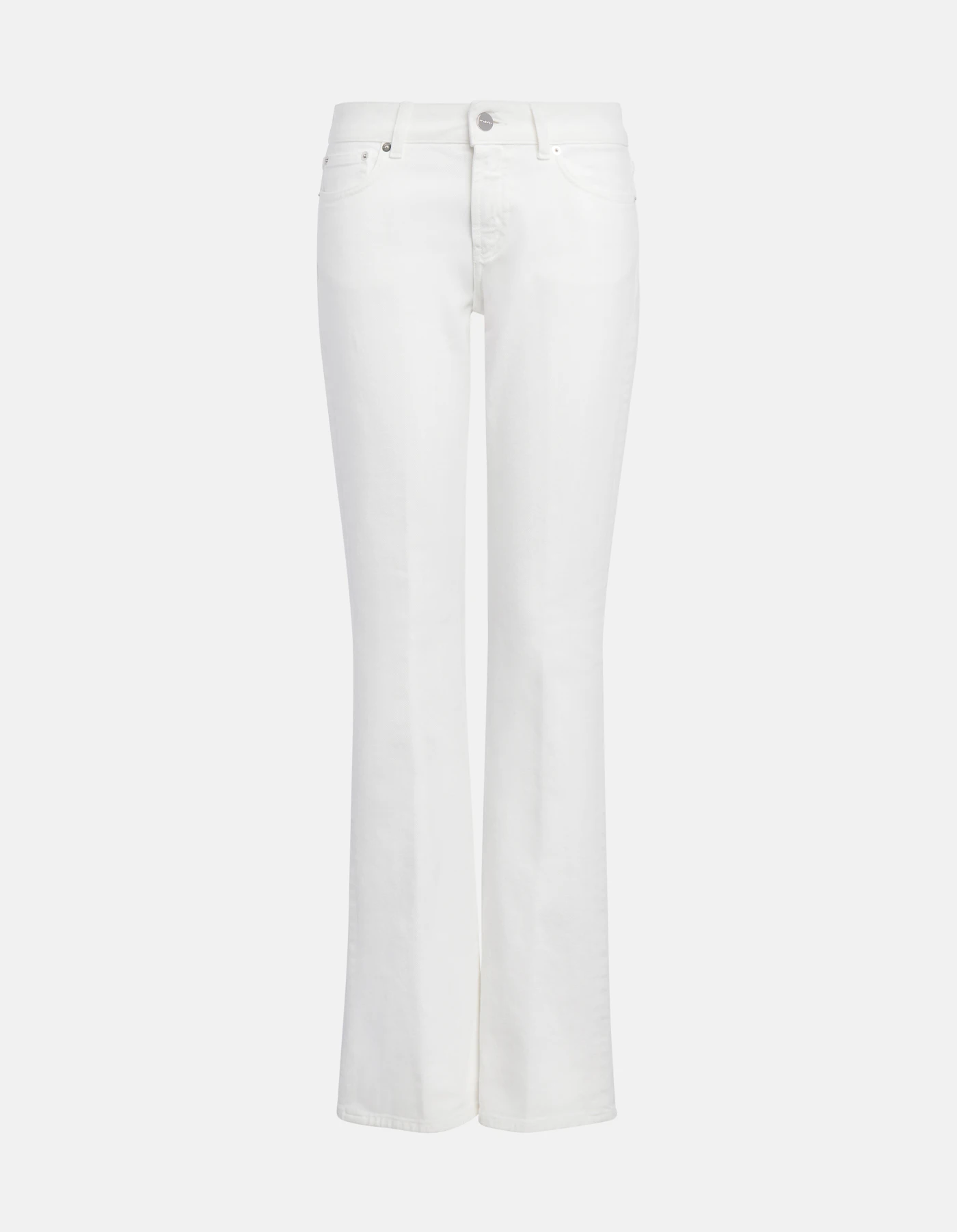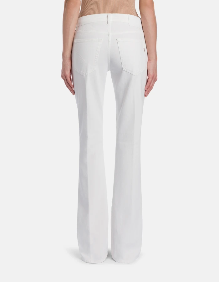 Newlola skinny-fit 5-pocket bootcut jeans, high rise. 11.5 oz bluesign APPROVED stretch bull denim. Bluesign garment-dyed. Dondup logo. Made in Italy