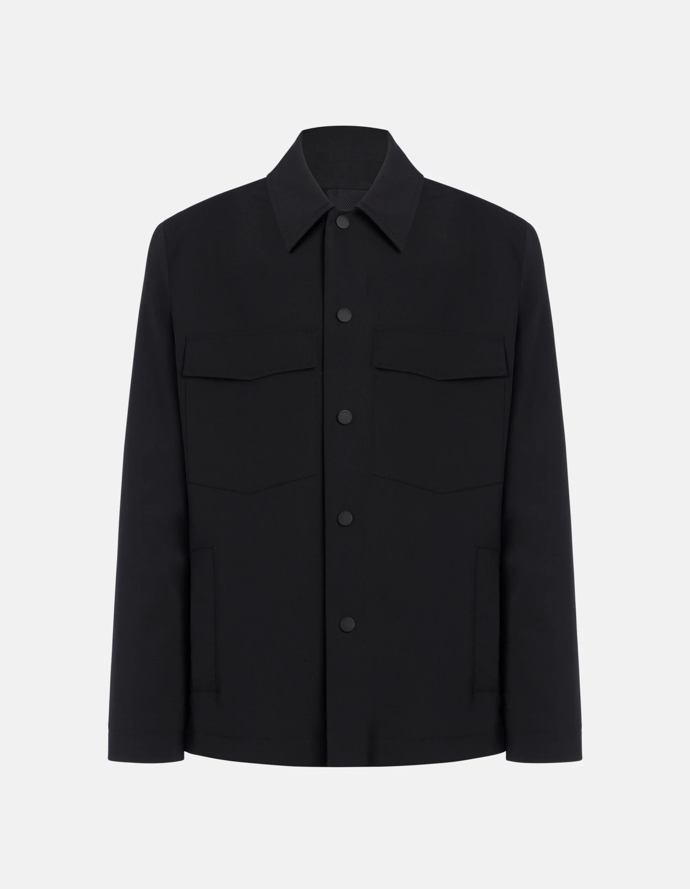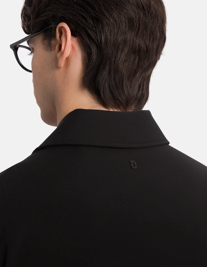 Regular-fit jacket with shirt collar, upper patch pockets with pointed flap and lower side welt pockets, mesh lining. Snap-button fastening. Stretch technical wool. Dondup logo. Made in Italy