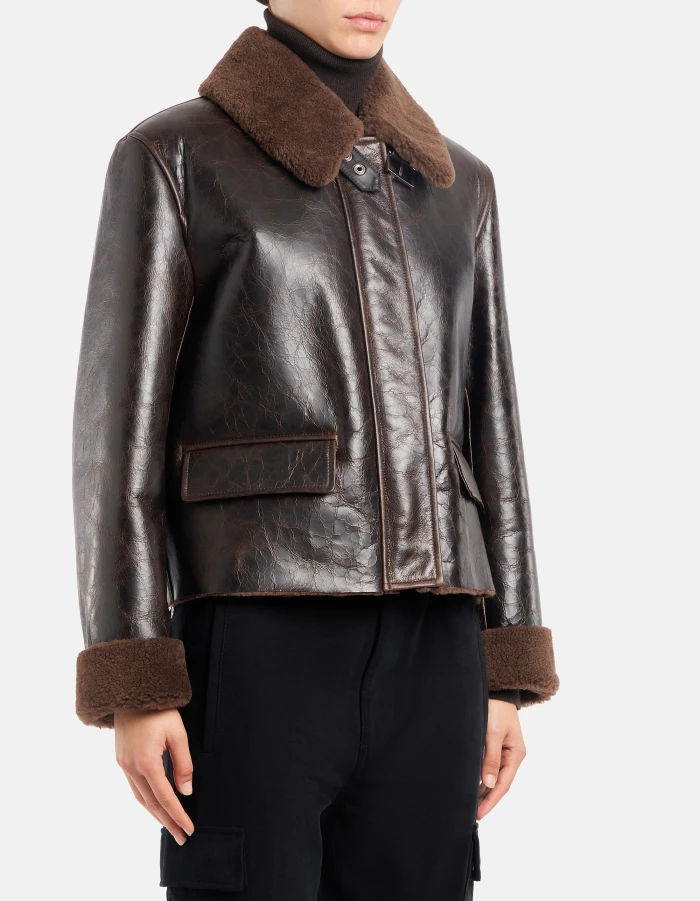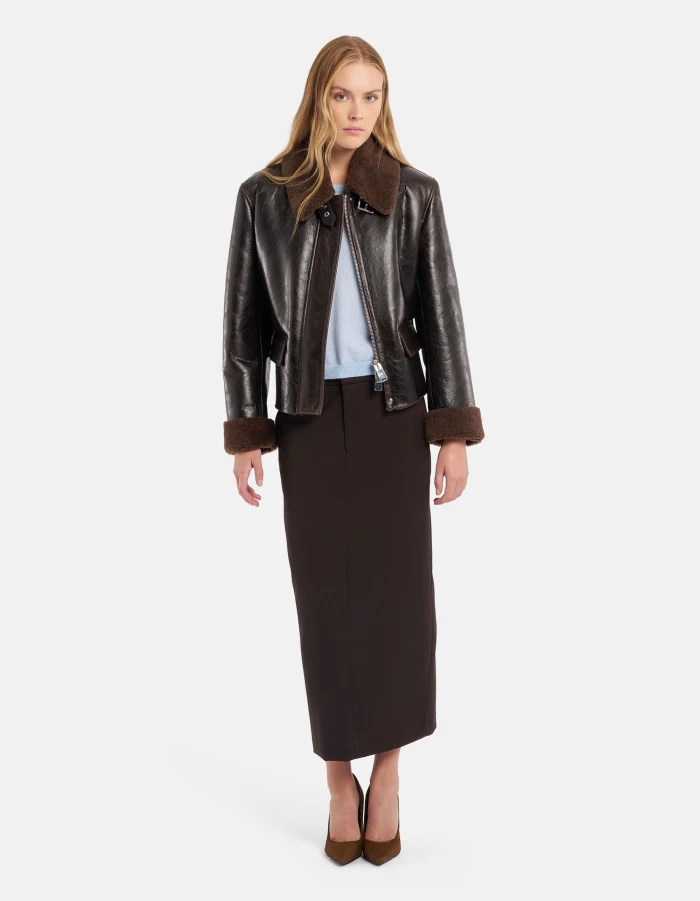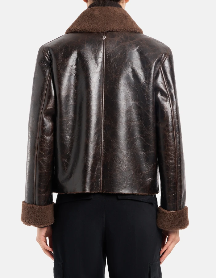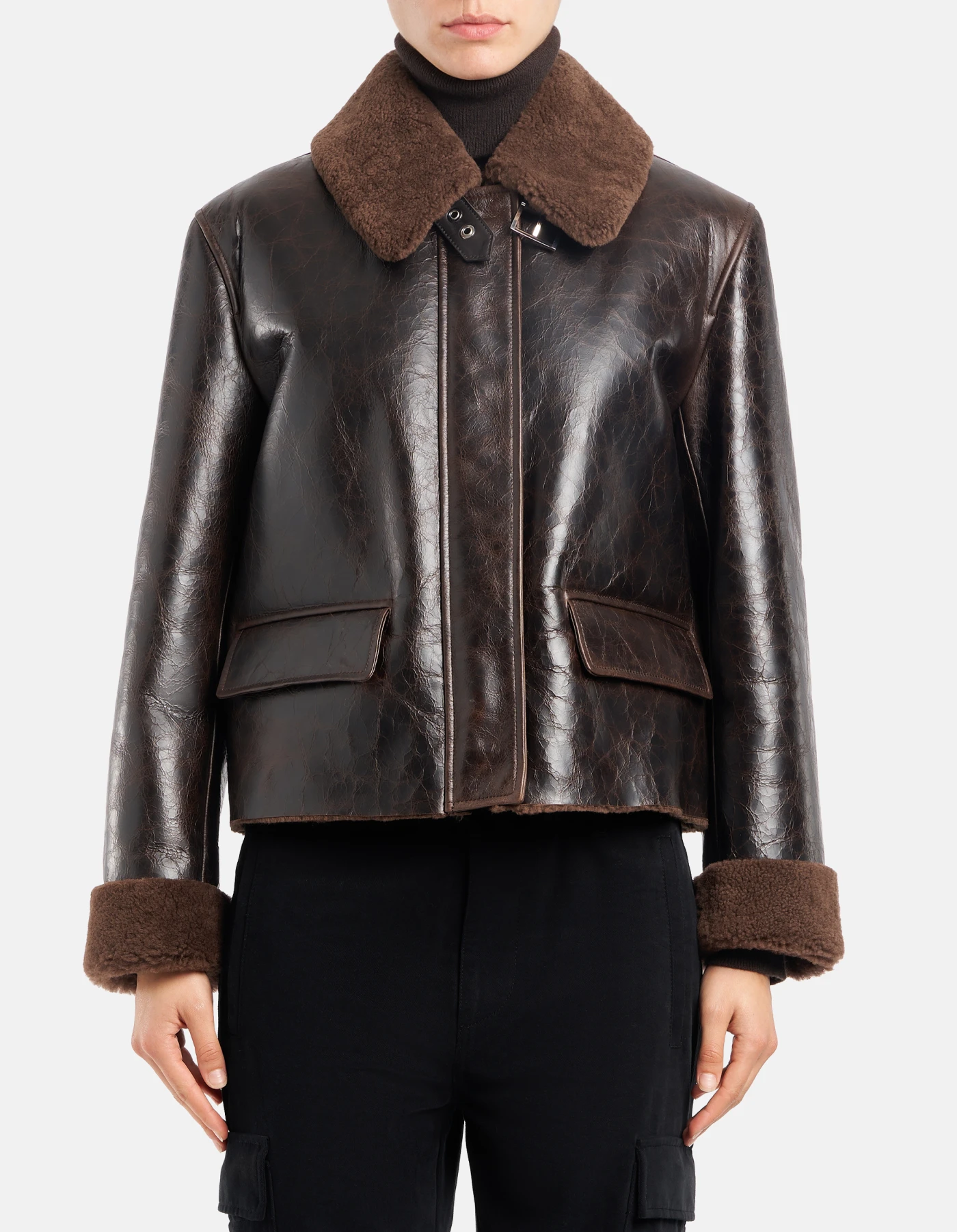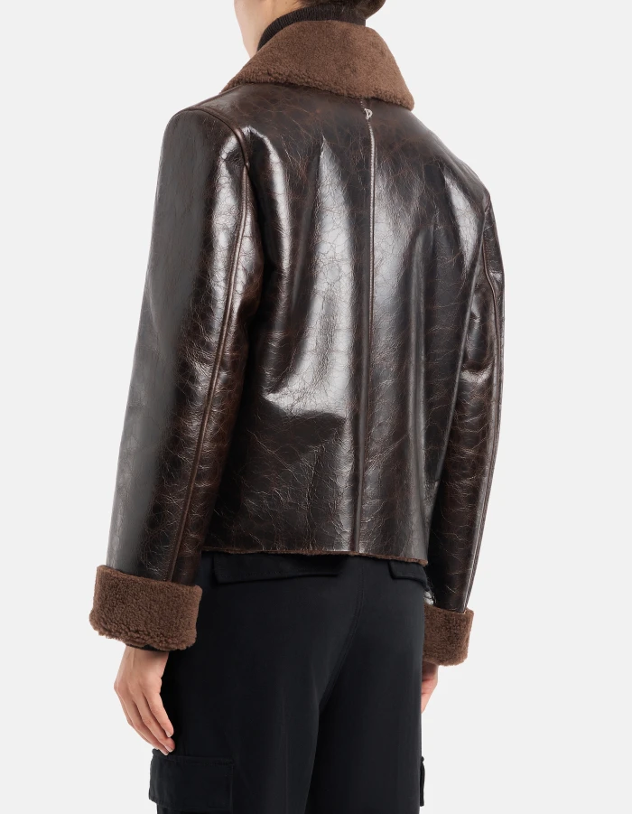 Regular-fit jacket with shirt collar with strap, front closure with hidden zip, flap pockets and belted bottom. Shearling. Dondup logo. Made in Italy