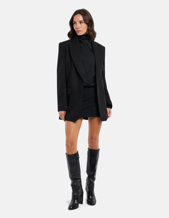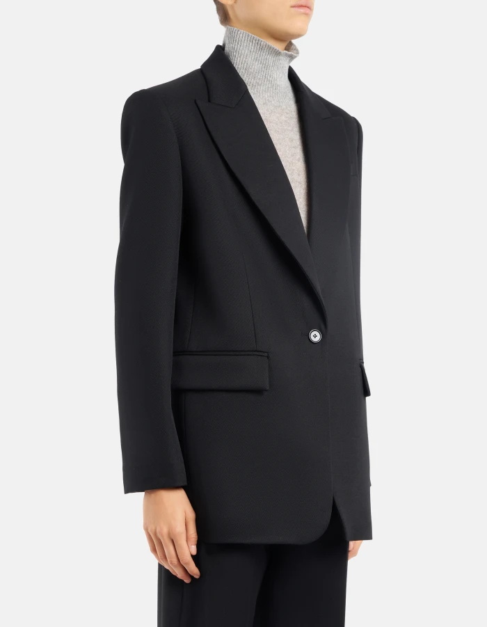 Blazer monopetto over ad un bottone, rever a lancia, tasche con pattina ed ampia spalla. Canvas di pura lana. Logo Dondup. Made in Italy