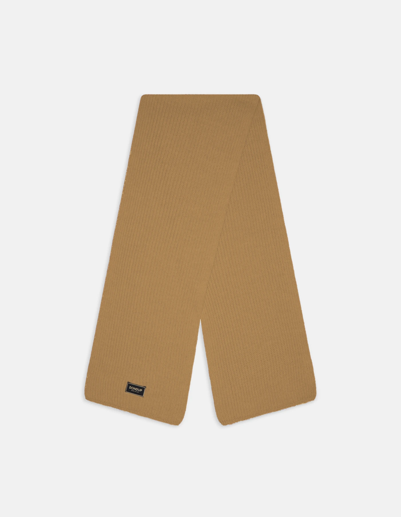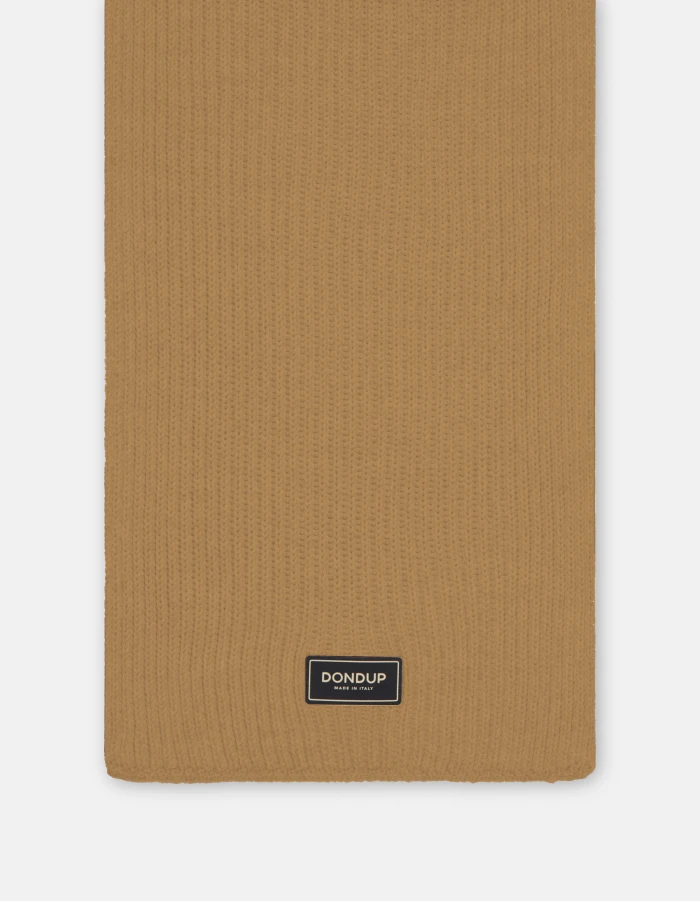 Sciarpa 30 x 190 monocolore a coste con etichetta logo applicata sul fondo. Lana tecnica. Logo Dondup. Made in Italy