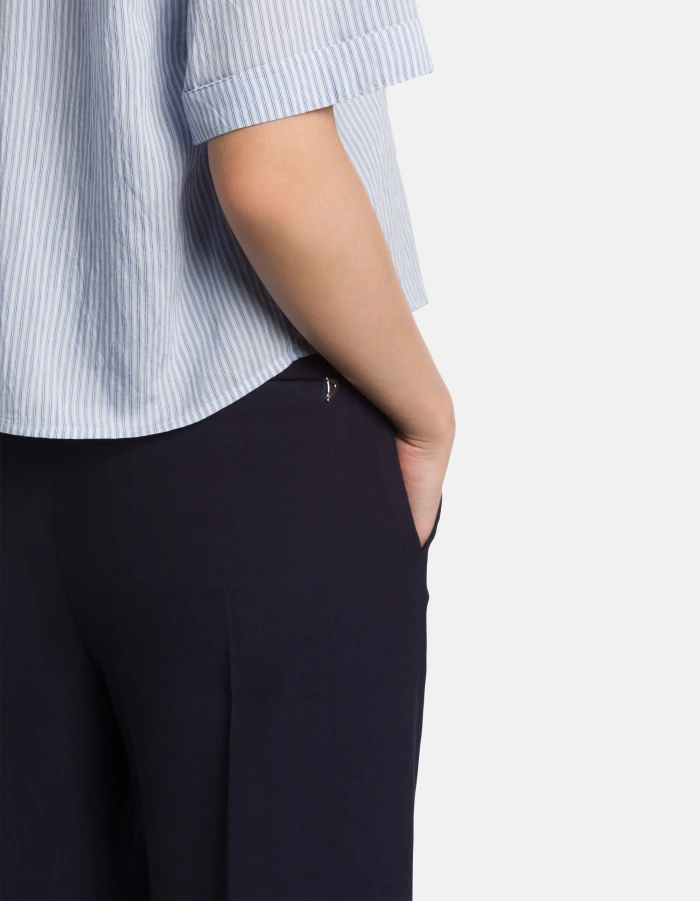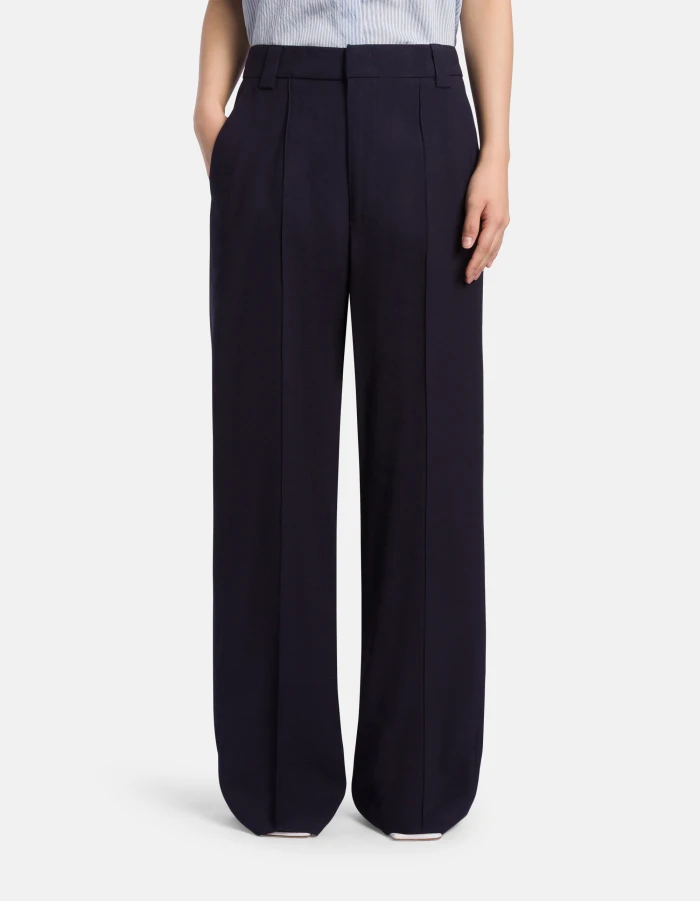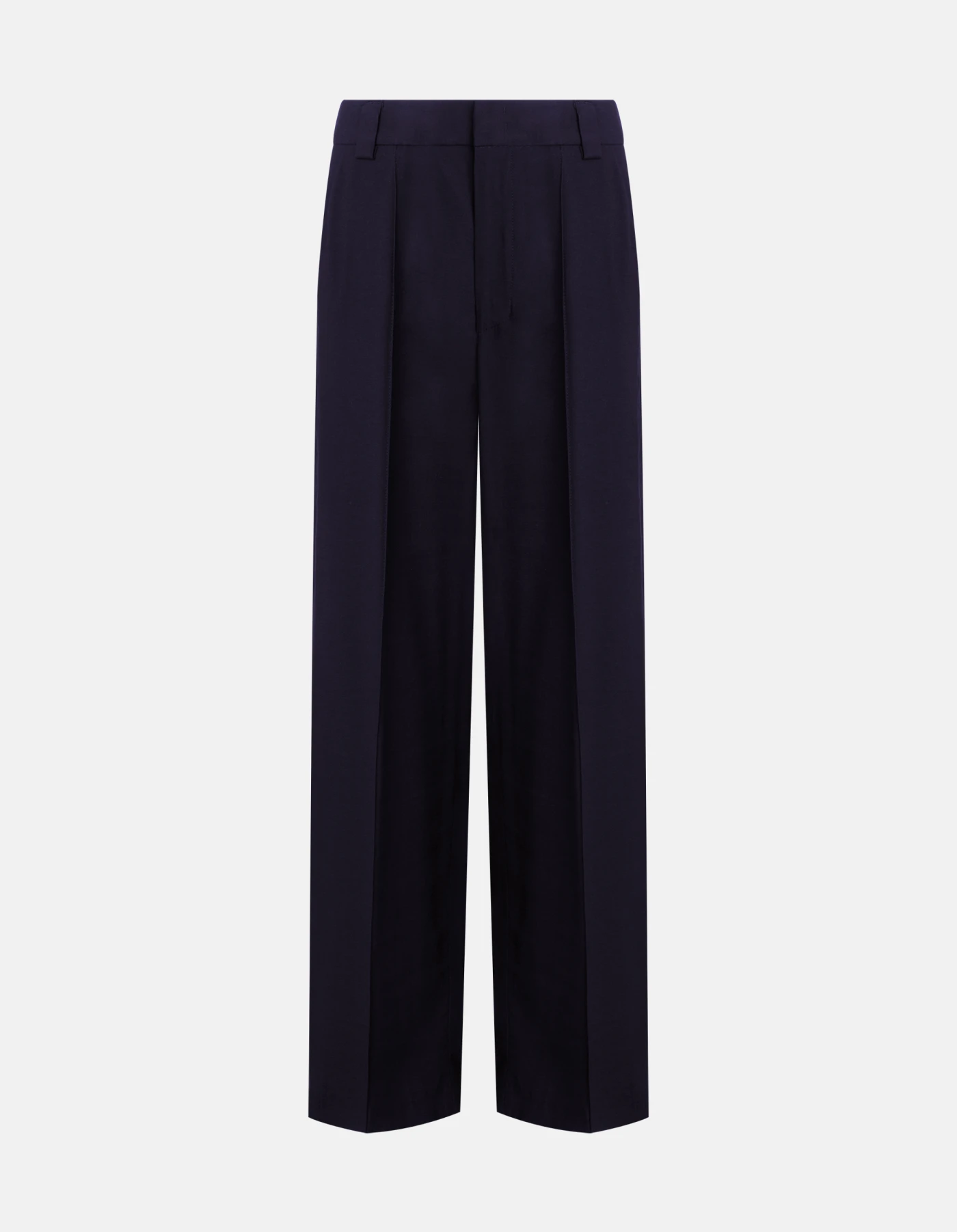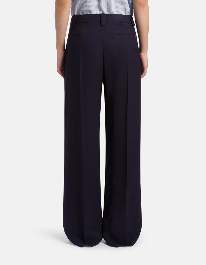 Abby wide-leg chinos, regular waist, welt pockets at the back. Viscose gabardine. Dondup logo. Made in Italy