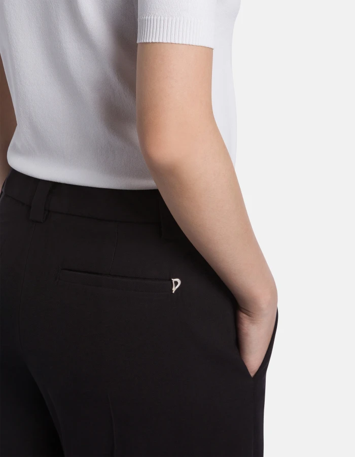 Abby wide-leg chinos, regular waist, welt pockets at the back. Viscose gabardine. Dondup logo. Made in Italy
