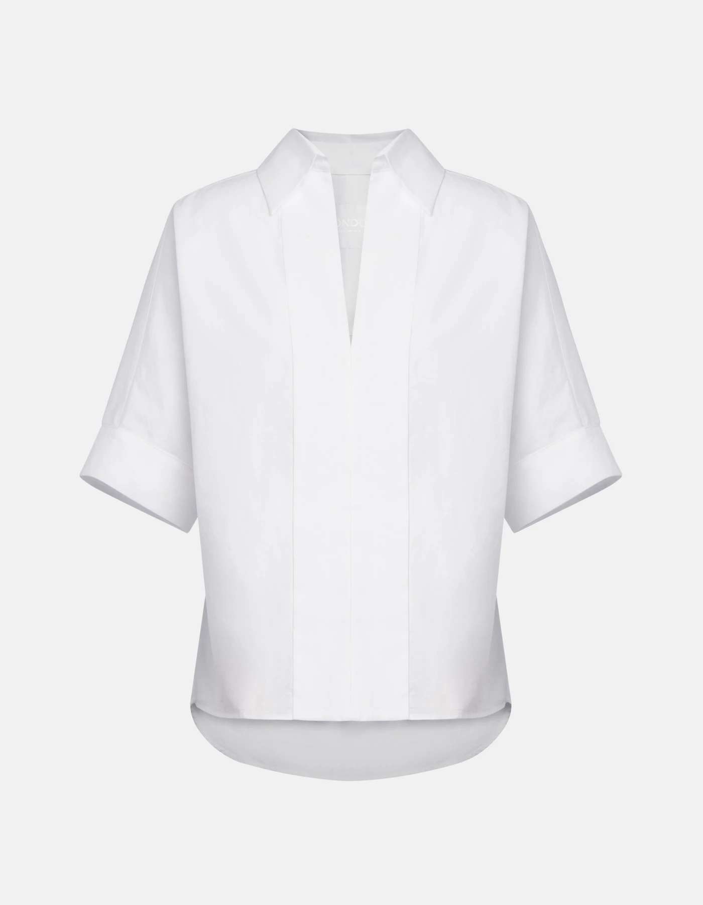 Short-sleeved boxy-fit shirt with polo neckline. Yarn-dyed gabardine. Dondup logo. Made in Italy