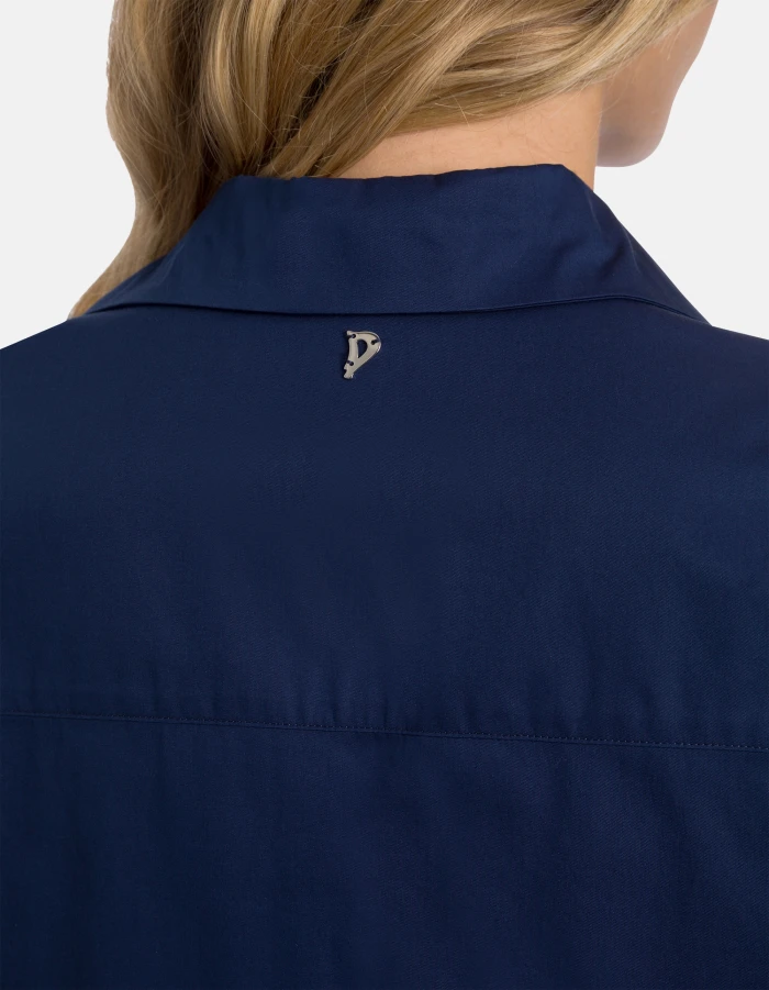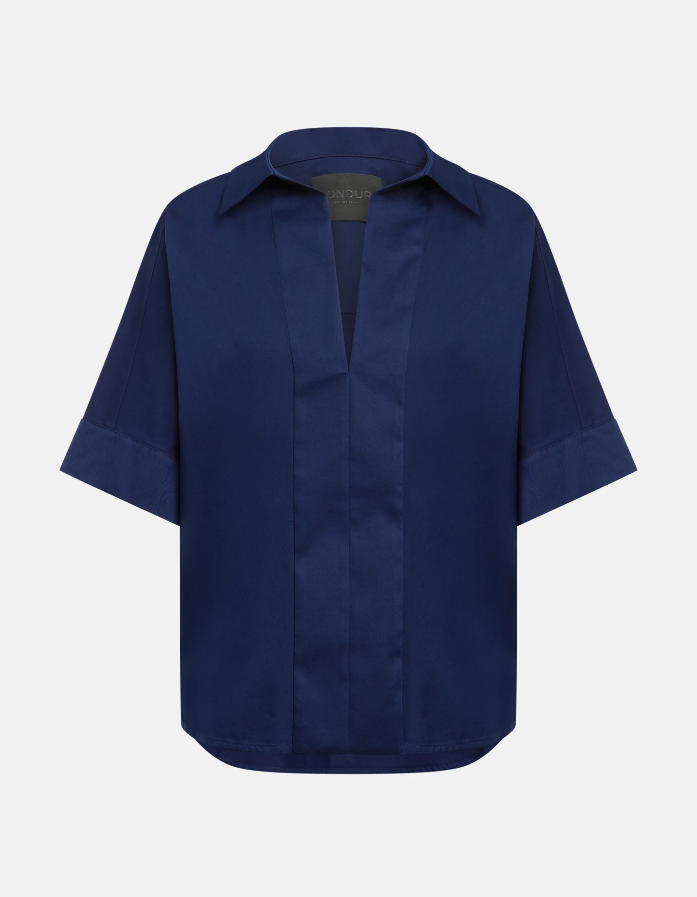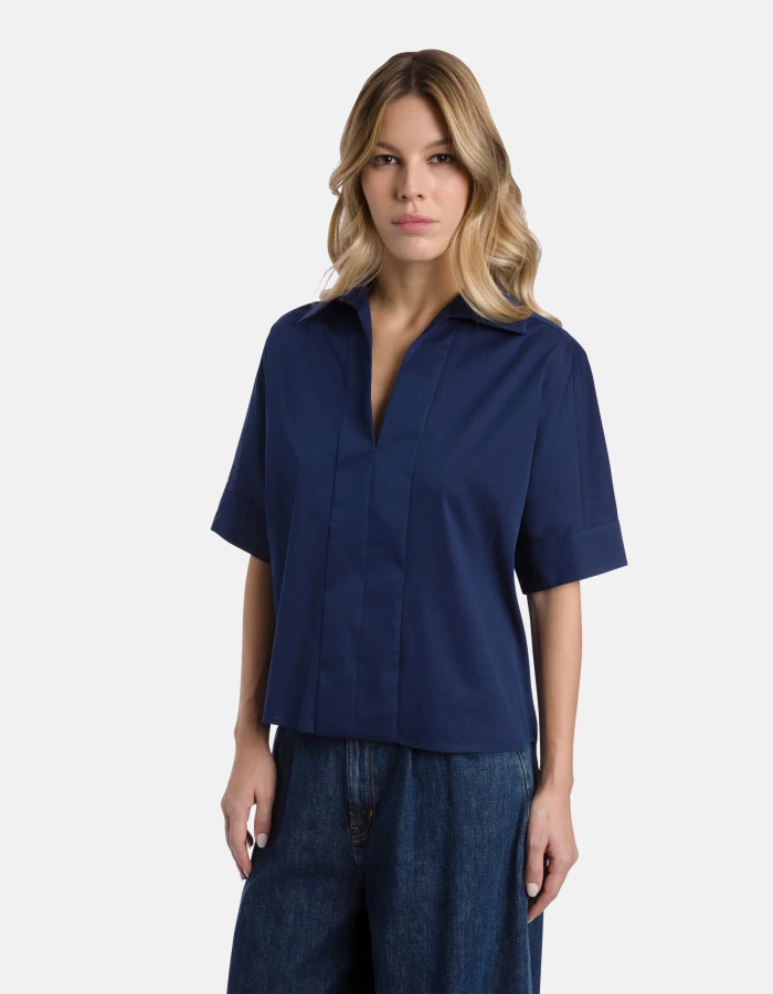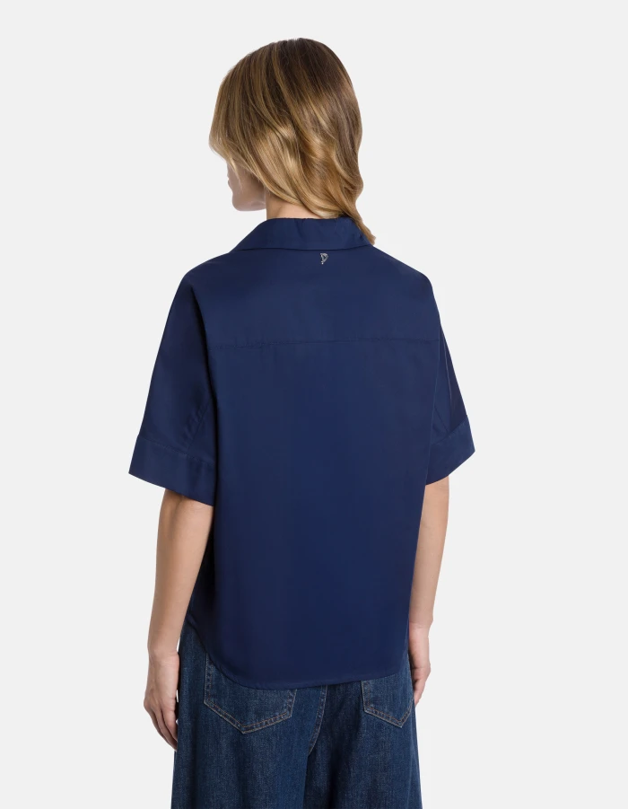 Short-sleeved boxy-fit shirt with polo neckline. Yarn-dyed gabardine. Dondup logo. Made in Italy