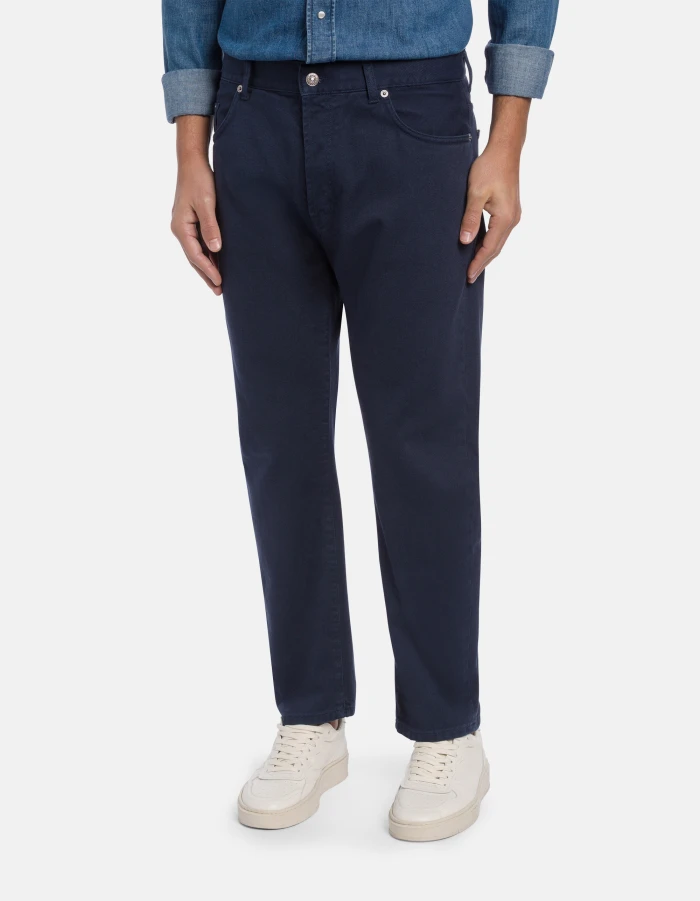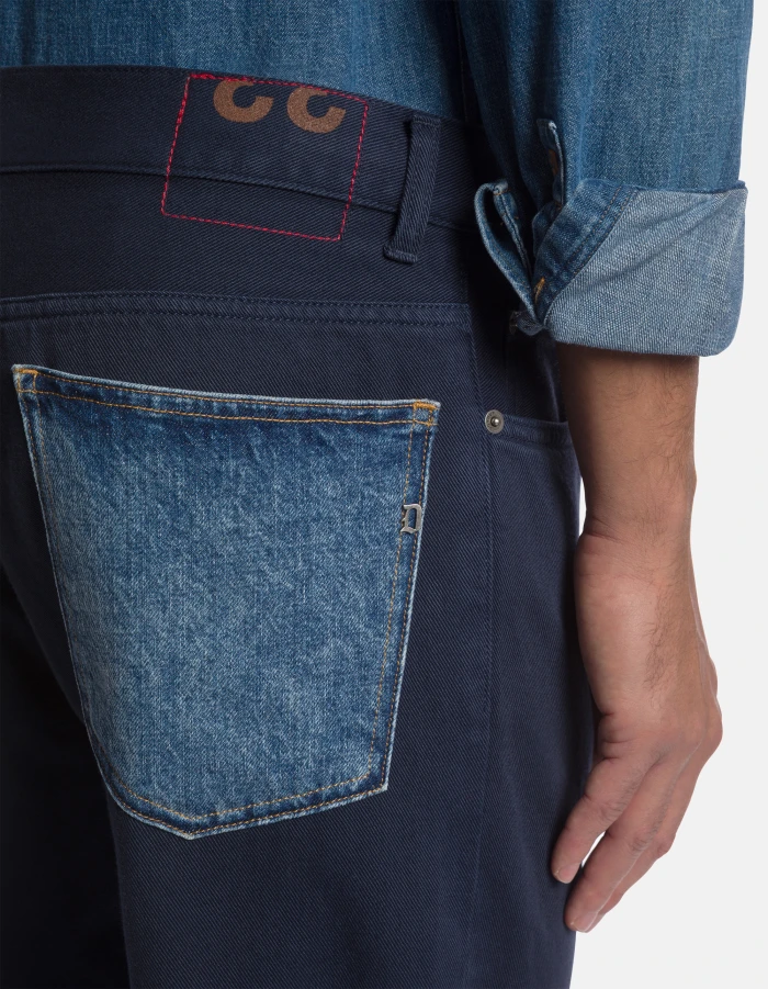 David tapered 5-pocket jeans, low rise, dropped crotch. Contrasting pockets. 10 oz rigid bull denim. Garment dyed. Dondup logo. Made in Italy