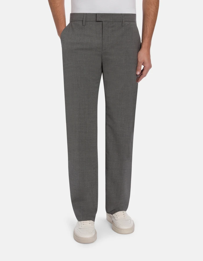 Elliot regular-fit chinos, regular waist, welt pockets at the back. Stretch polyester wool weave. Dondup logo. Made in Italy