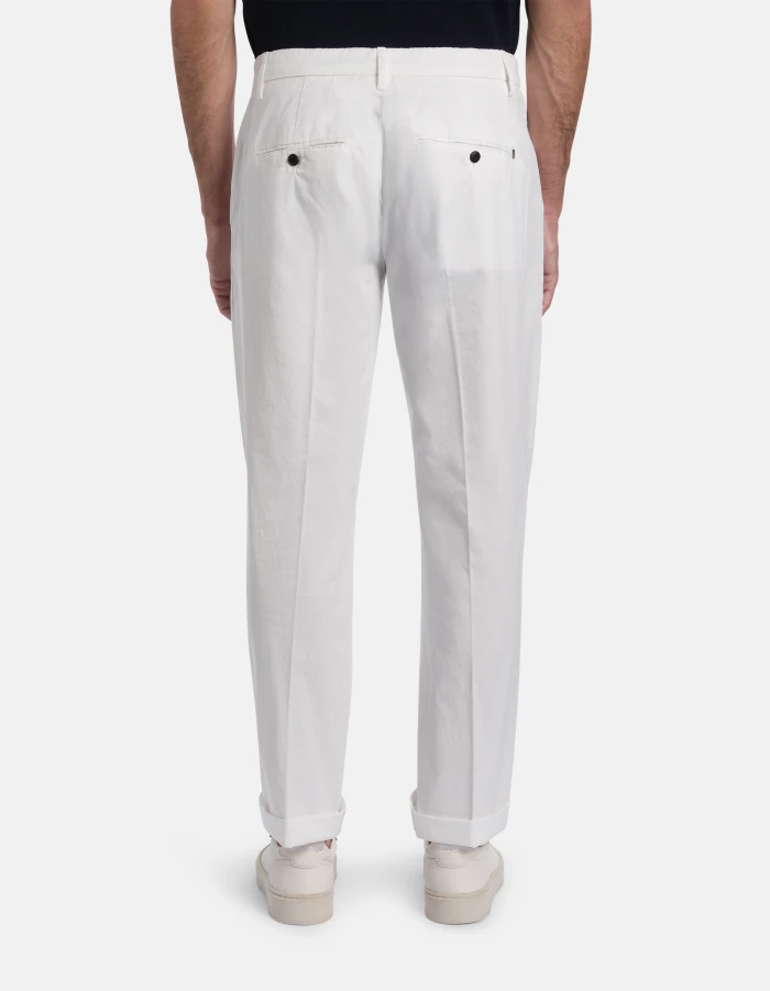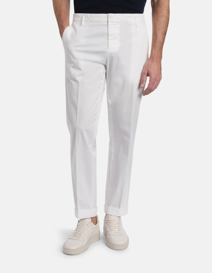 Gaubert relaxed regular-fit chinos, low waist, welt pockets at the back. Lightweight gabardine. Garment dyed. Dondup logo. Made in Italy