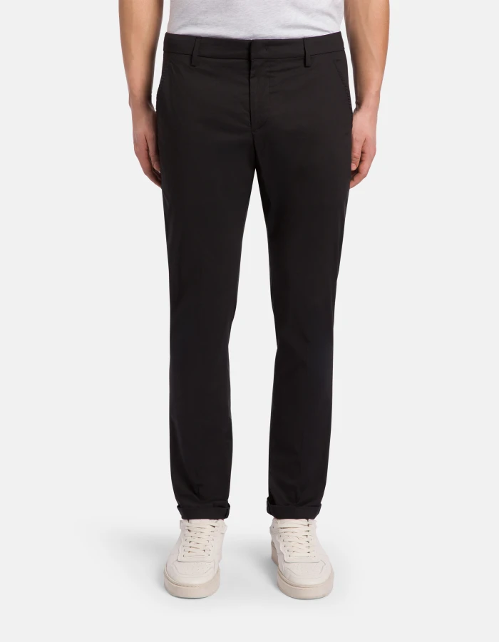 Gaubert slim-fit chinos, low waist, welt pockets at the back. Cotton poplin and stretch nylon. Dondup logo. Made in Italy